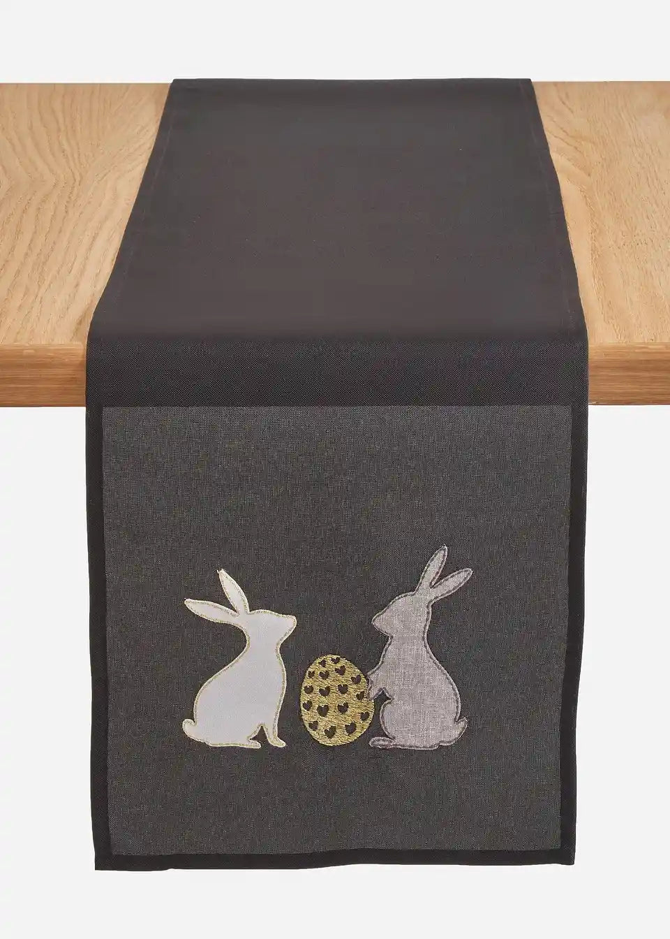 Der Tischläufer ergänzt Deine Ostertafel perfekt. Die Hasen sind aufgestickt und haben einen leichten Glanz.