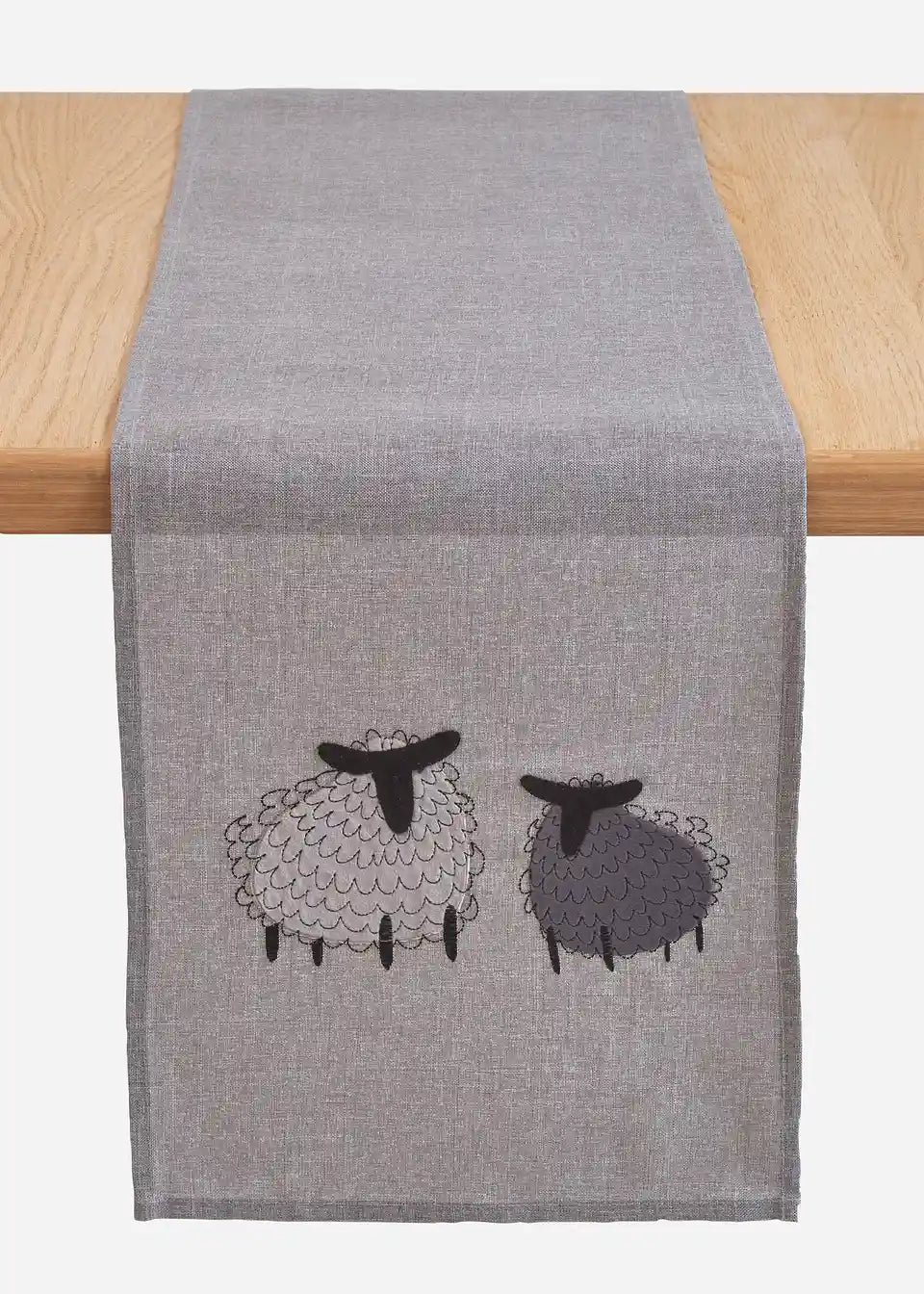 Wenn Du es gerne etwas verspielt magst und Deine Ostertafel modern gestalten möchtest, ist dieser Tischläufer mit Schafen genau das richtige.