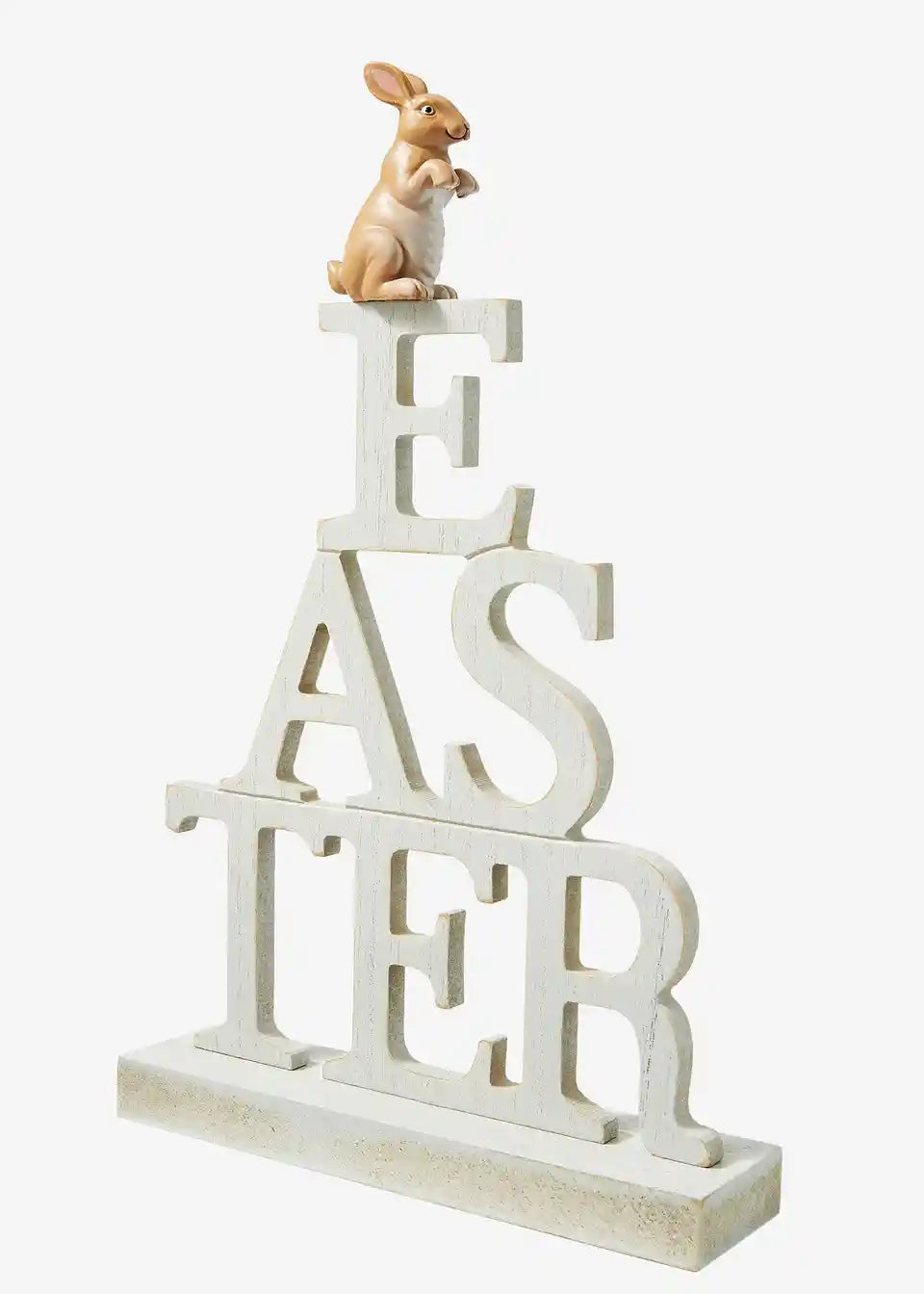 Österliche Dekoration mit Schriftzug EASTER und Hase