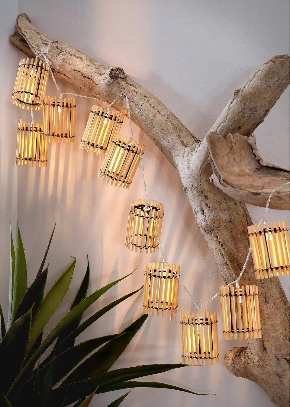 Schöne Beleuchtung im Außenbereich - LED-Lichterkette mit Bambus