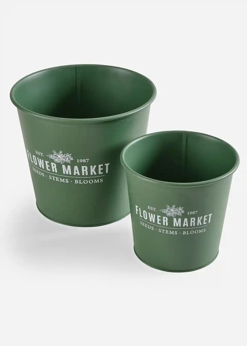 Das runde Pflanztöpfe-Set besteht aus zwei ansprechenden Töpfen in harmonischen Grüntönen, die sowohl im Innen- als auch im Außenbereich eingesetzt werden können. Mit dem klaren Schriftzug "FLOWER MARKET" verleihen sie jedem Raum eine frische und moderne Note. Die robuste Verarbeitung sorgt für Langlebigkeit und ist ideal für die Anpflanzung von Blumen, Kräutern oder kleinen Pflanzen. Die unterschiedlichen Größen ermöglichen vielseitige Gestaltungsmöglichkeiten und setzen die Pflanzen perfekt in Szene. Diese Töpfe sind nicht nur funktional, sondern auch ein stilvolles Dekorationselement, das jeden Raum aufwertet