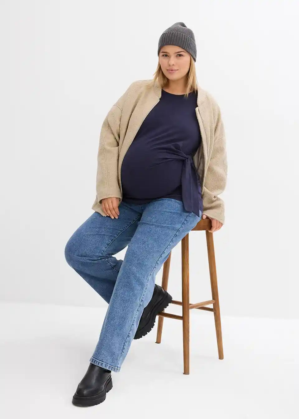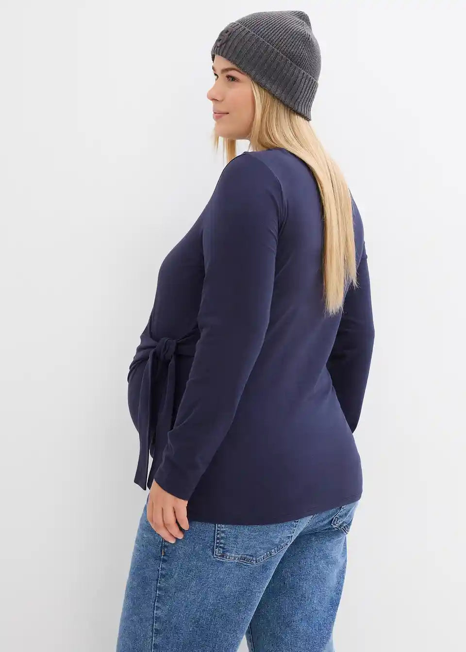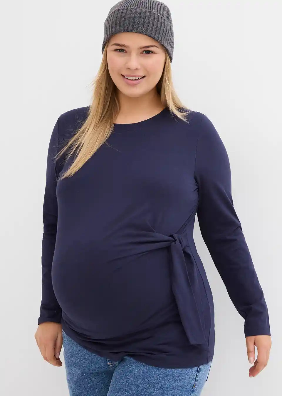 Langärmeliges Umstandshirt mit Knotendetail aus Bio-Baumwolle
