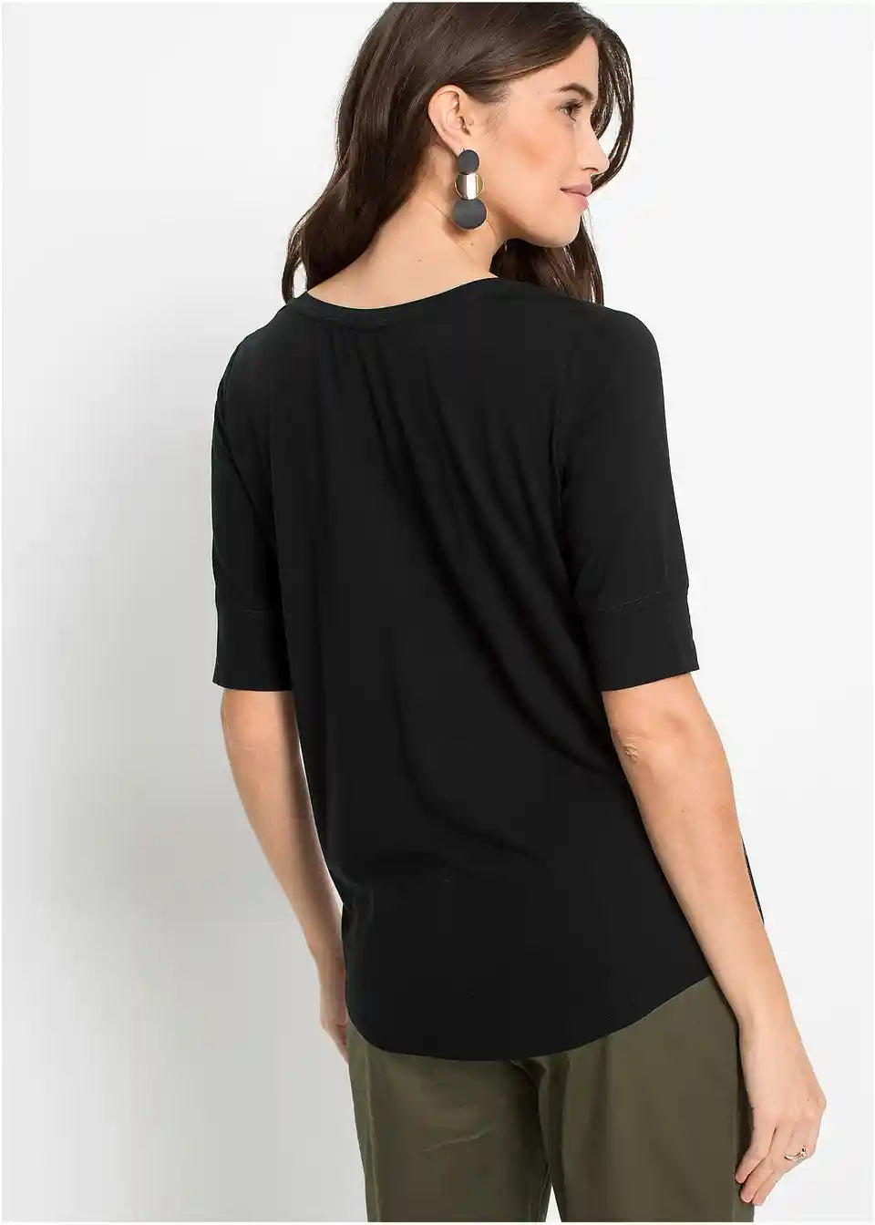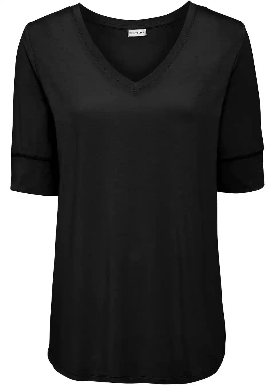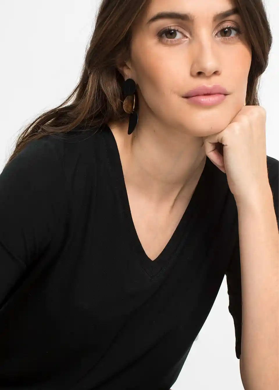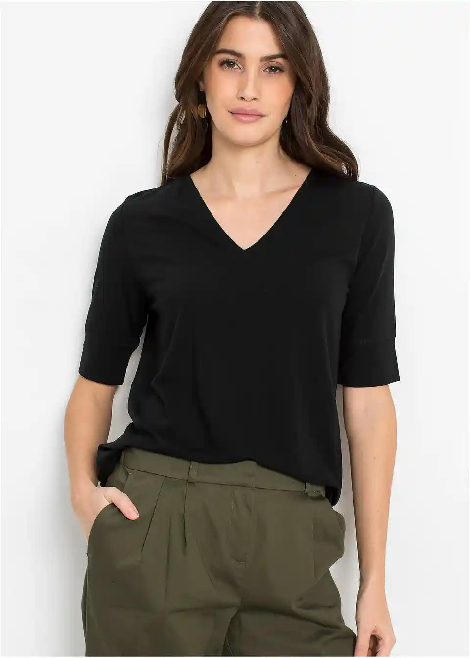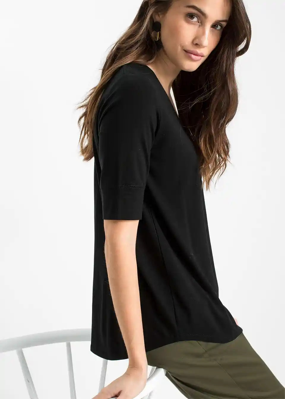 Vielseitig kombinierbares V-Shirt aus nachhaltiger Viskose.
