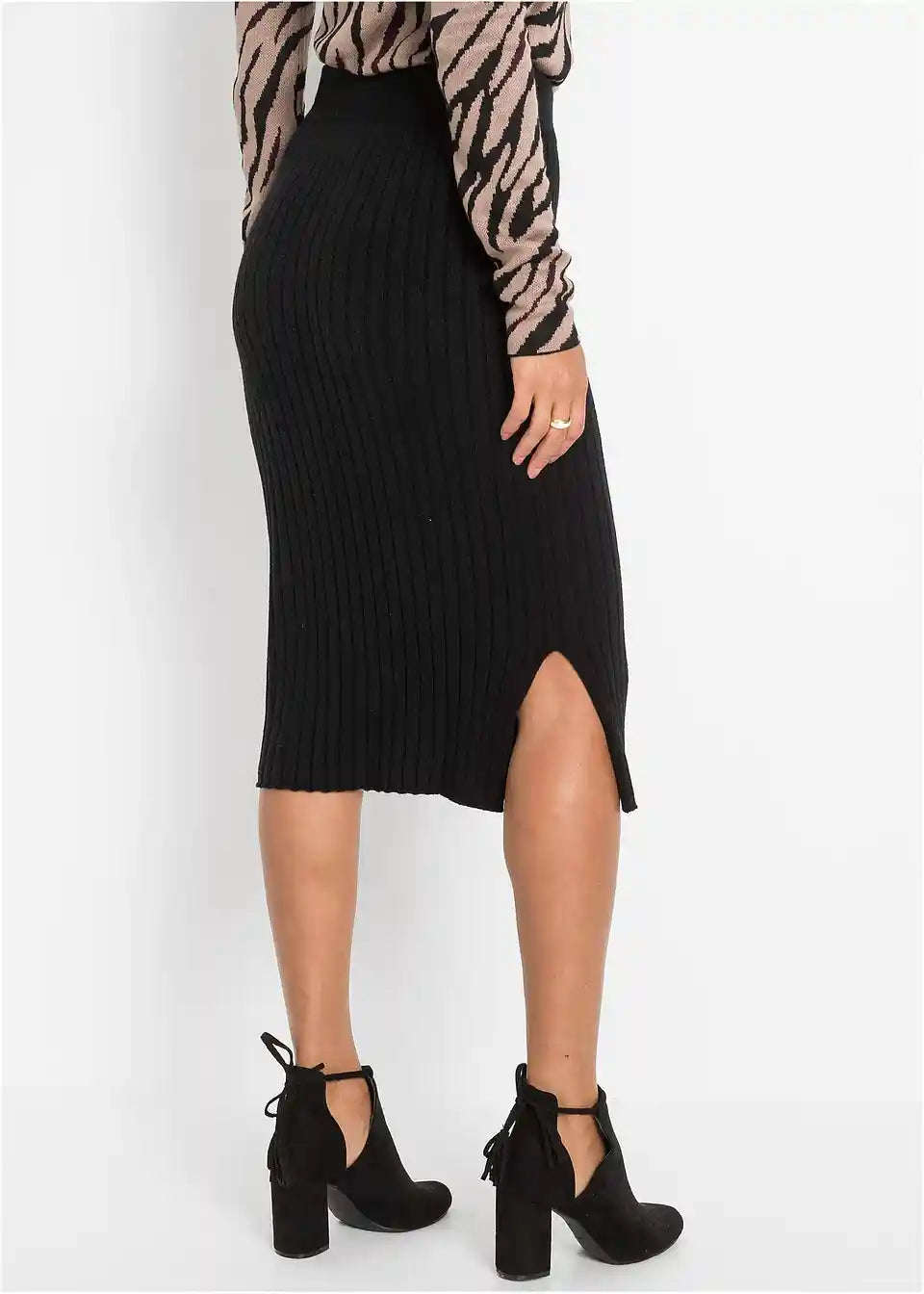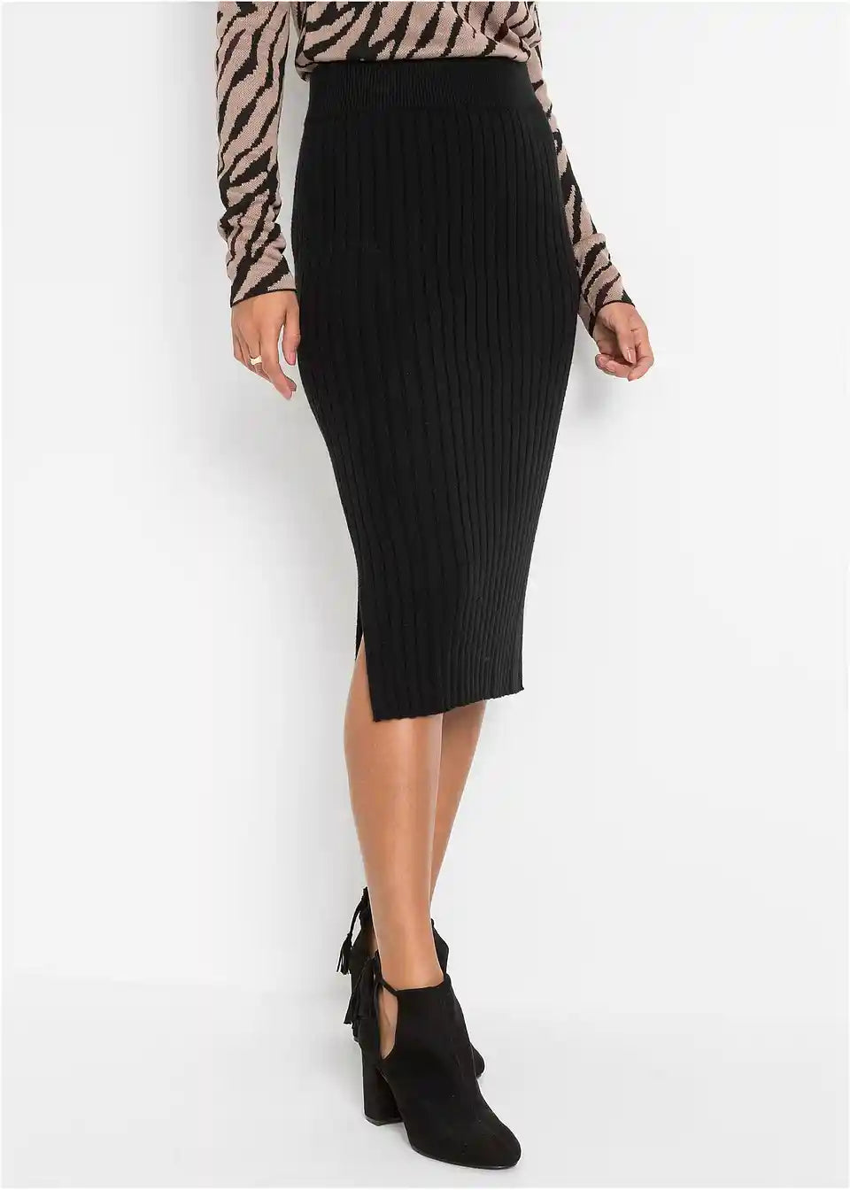 Schöner Rippstrick-Rock mit seitlichen Schlitzen und elastischem Bund.