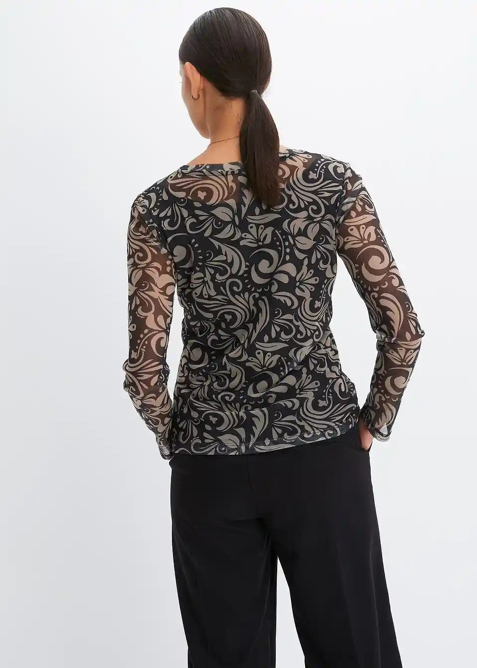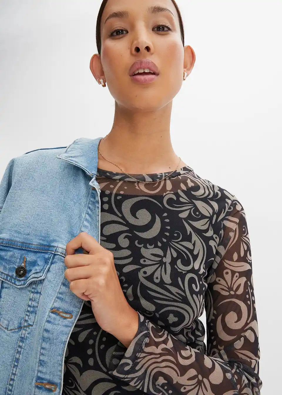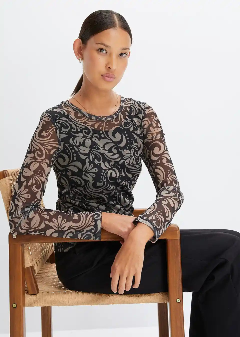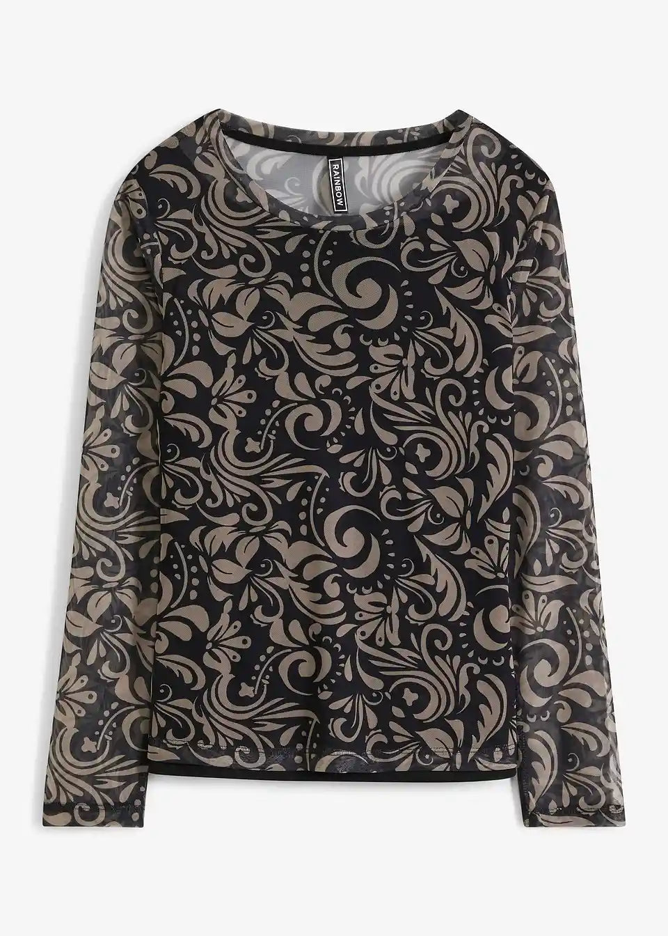Stylisches Langarmshirt im Mesh-Look mit Druck
