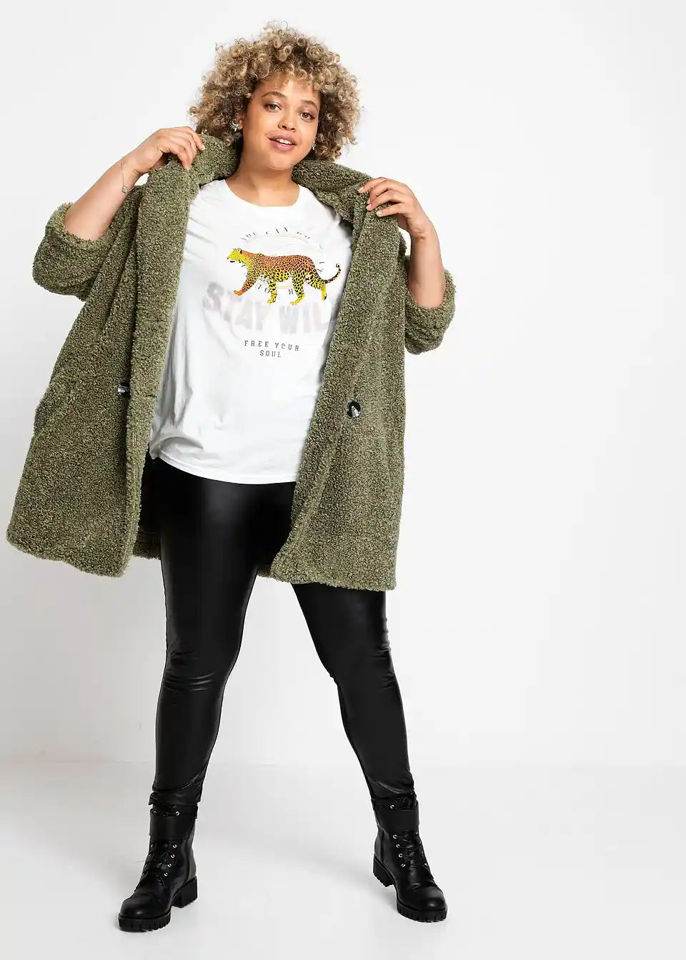 Egal, ob für Alltag oder Party – mit diesen Lederimitat-Leggings lassen sich zahlreiche Trend-Outfits zusammenstellen. Die Vorderseite der langen Leggings ist in cooler Lederoptik gestaltet und der Bund mit einem elastischen Gummizug designt. Die Leggings passen besonders gut zu Longshirts oder weit geschnittenen Oberteilen und sehen in Kombination mit lässigen Boots ebenso super aus wie mit Sneakern oder Stiefeletten.