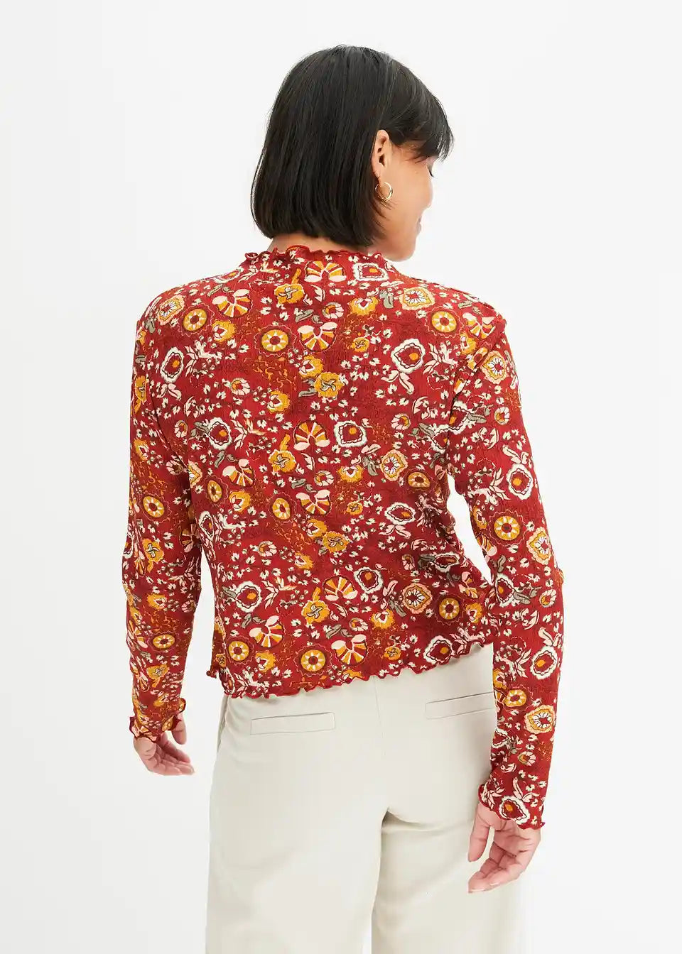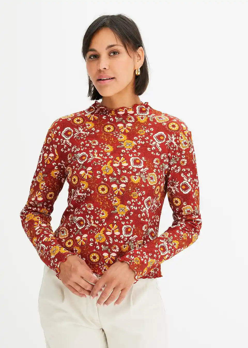 Bedrucktes Langarmshirt mit Stehkragen