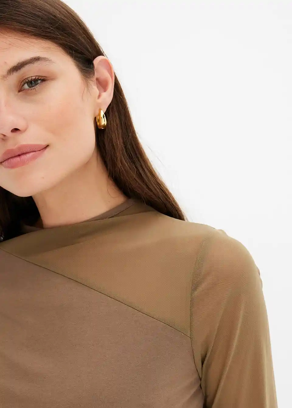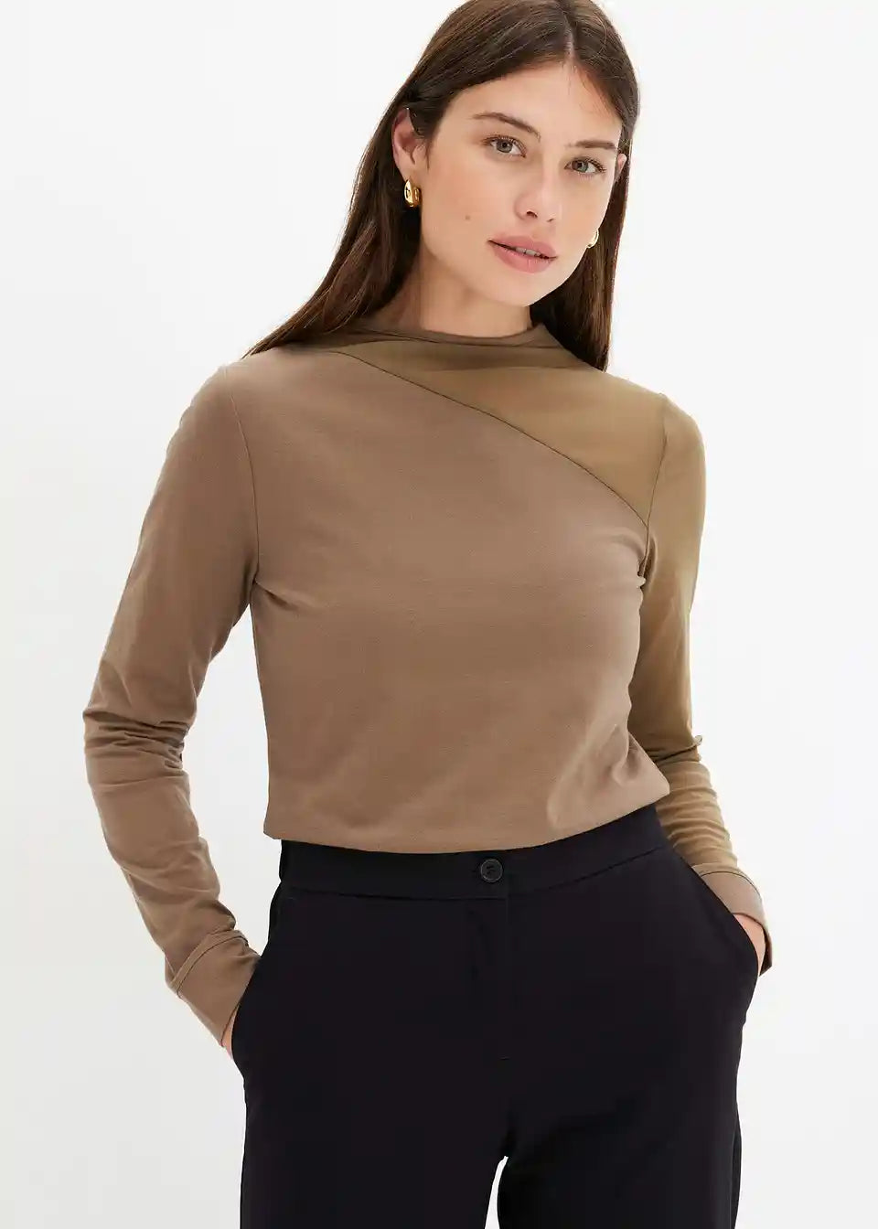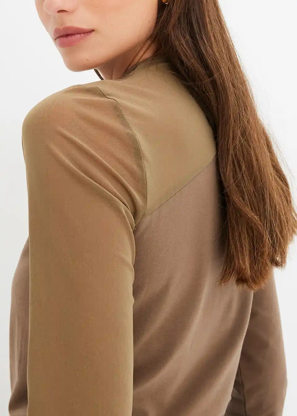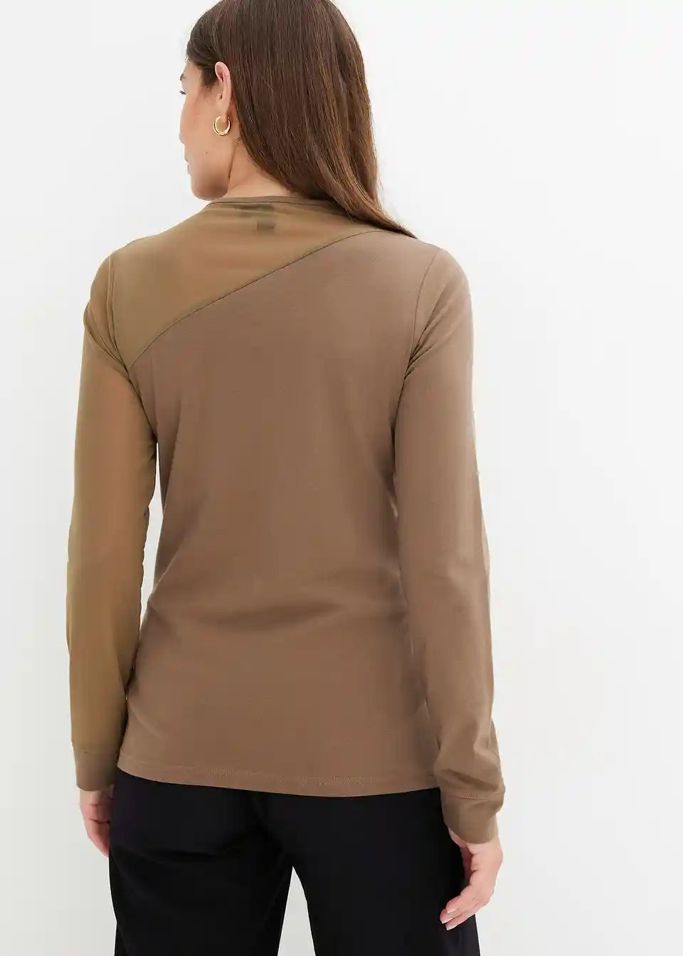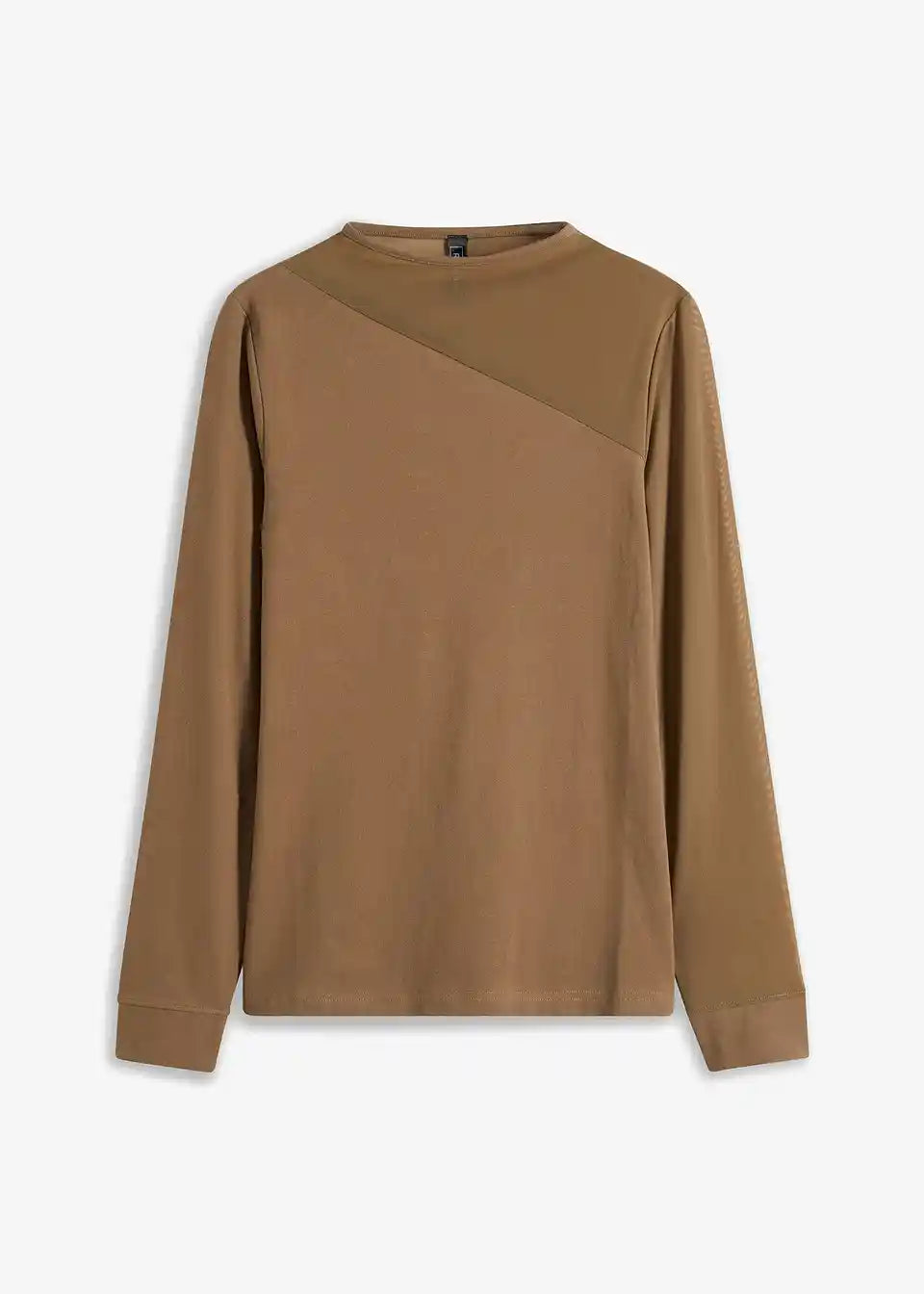 Langärmliges Jerseyshirt mit asymmetrischem Mesh-Einsatz