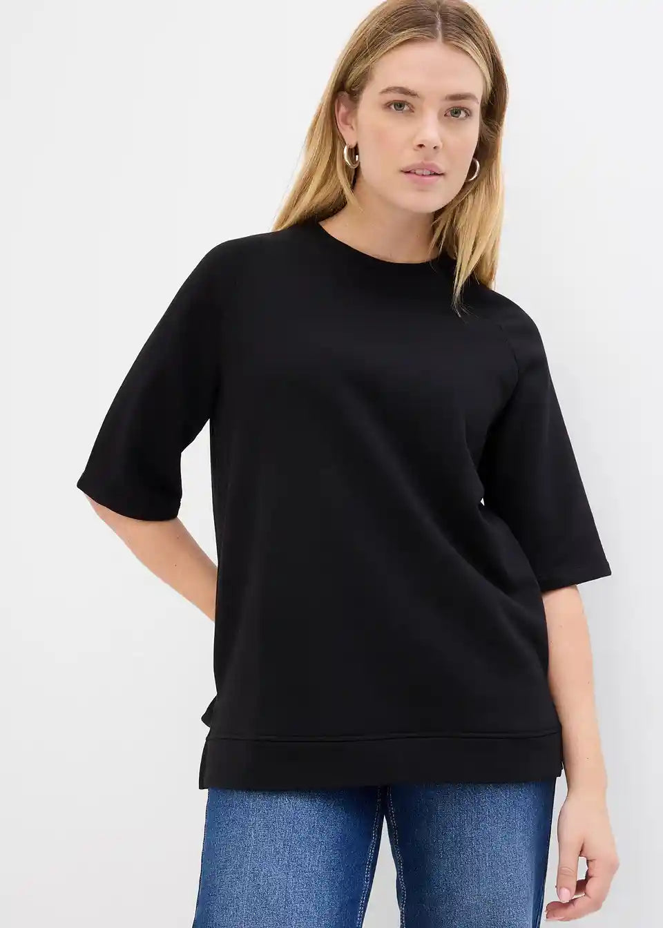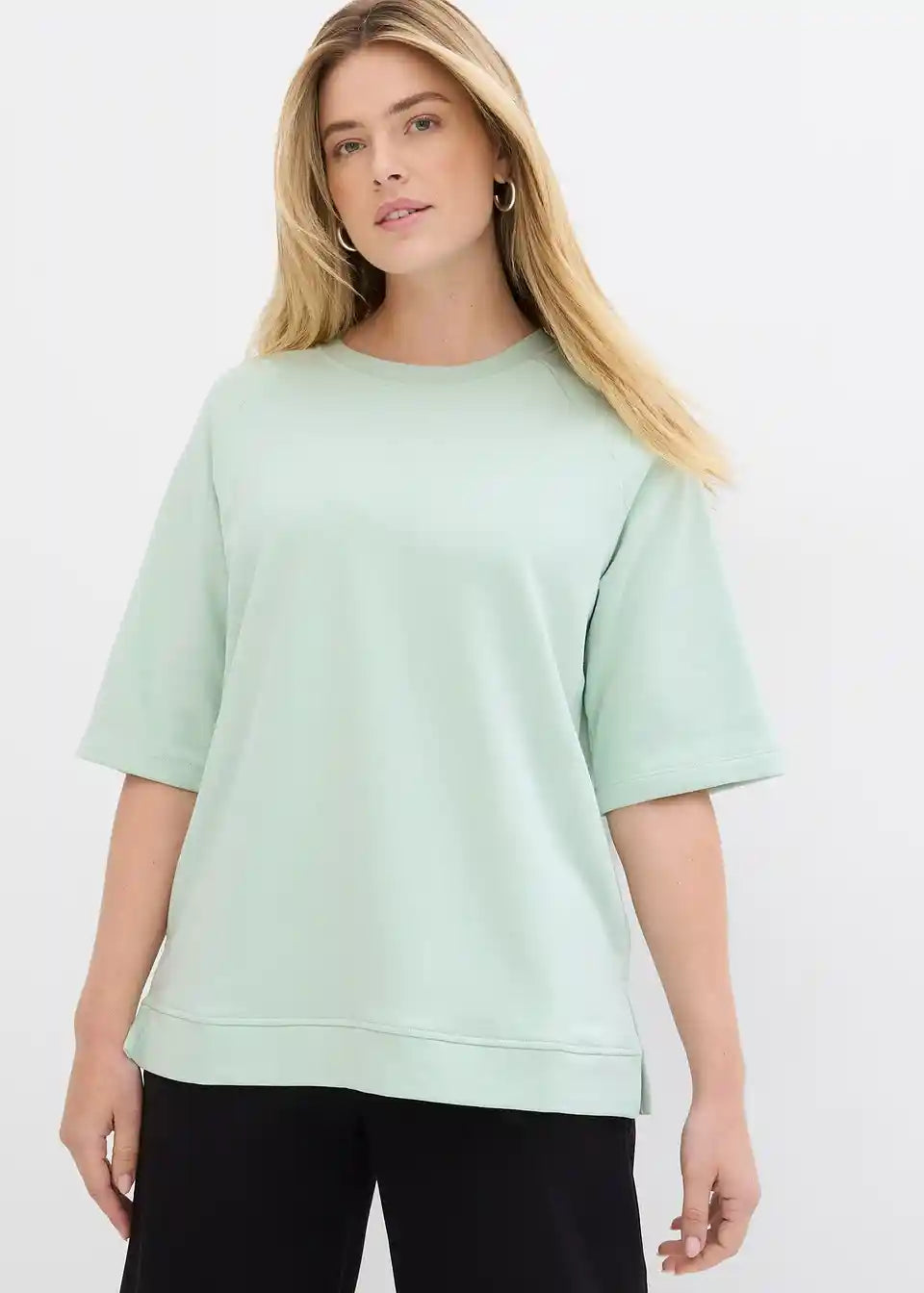 Kurzarm-Sweatshirt mit Seitenschlitzen und weiter Passform