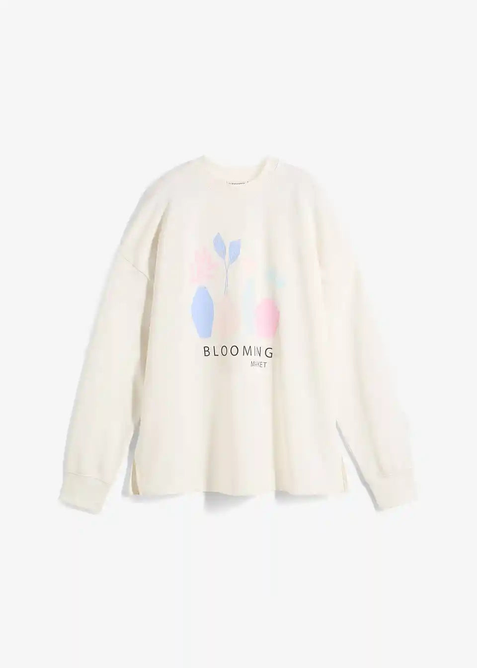Langarm-Sweatshirt mit Blumen-Druck und Seitenschlitzen