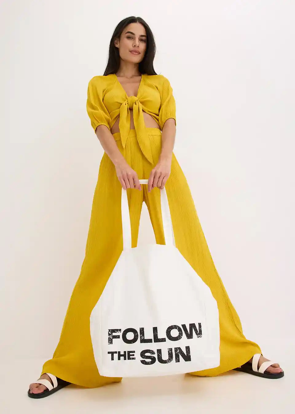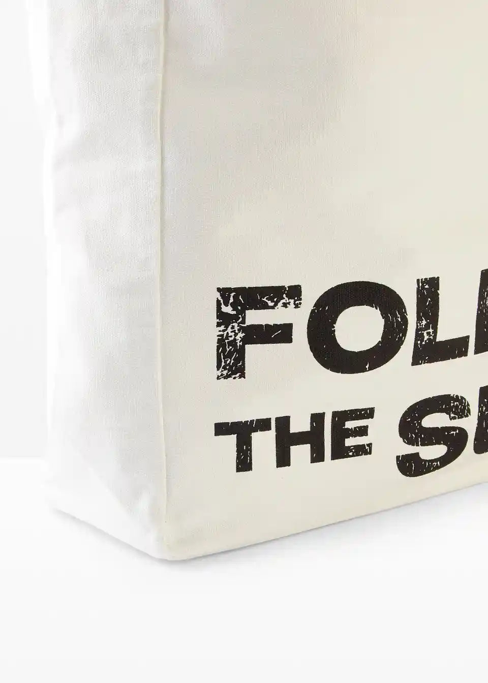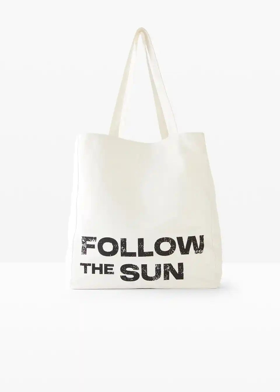 Sommerlicher Shopper aus Baumwolle mit Schriftzug und viel Stauraum