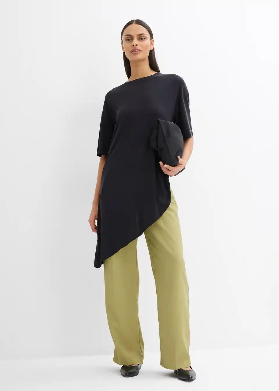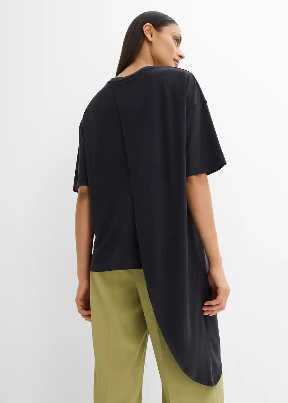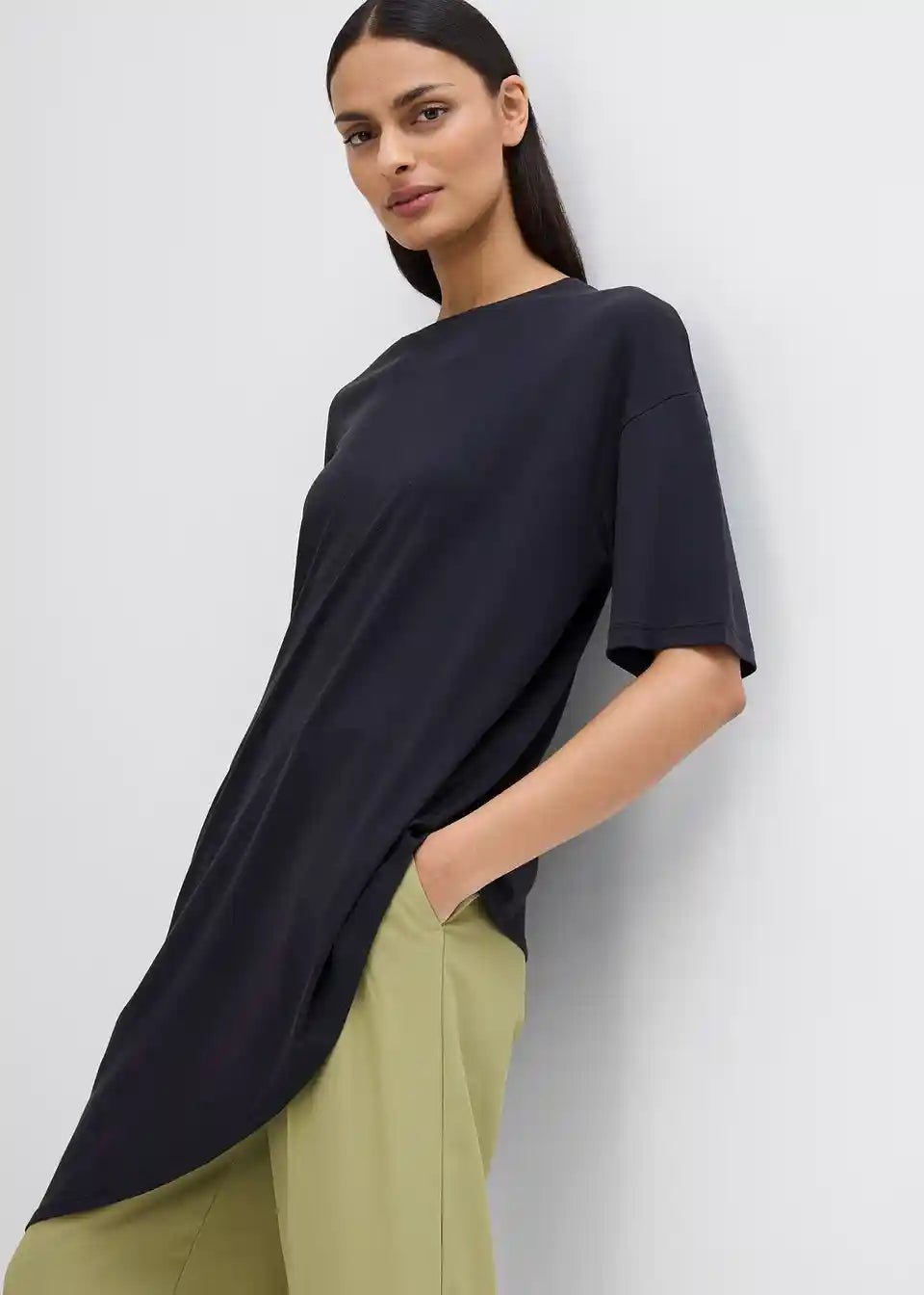 Kurzarmshirt mit asymmetrischen Saum aus Modal-Mix