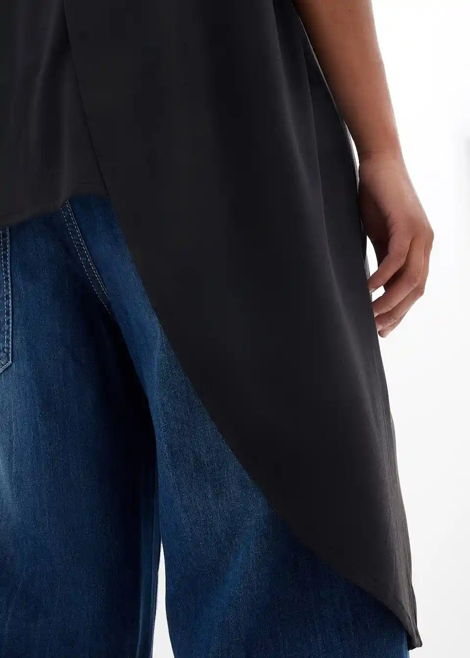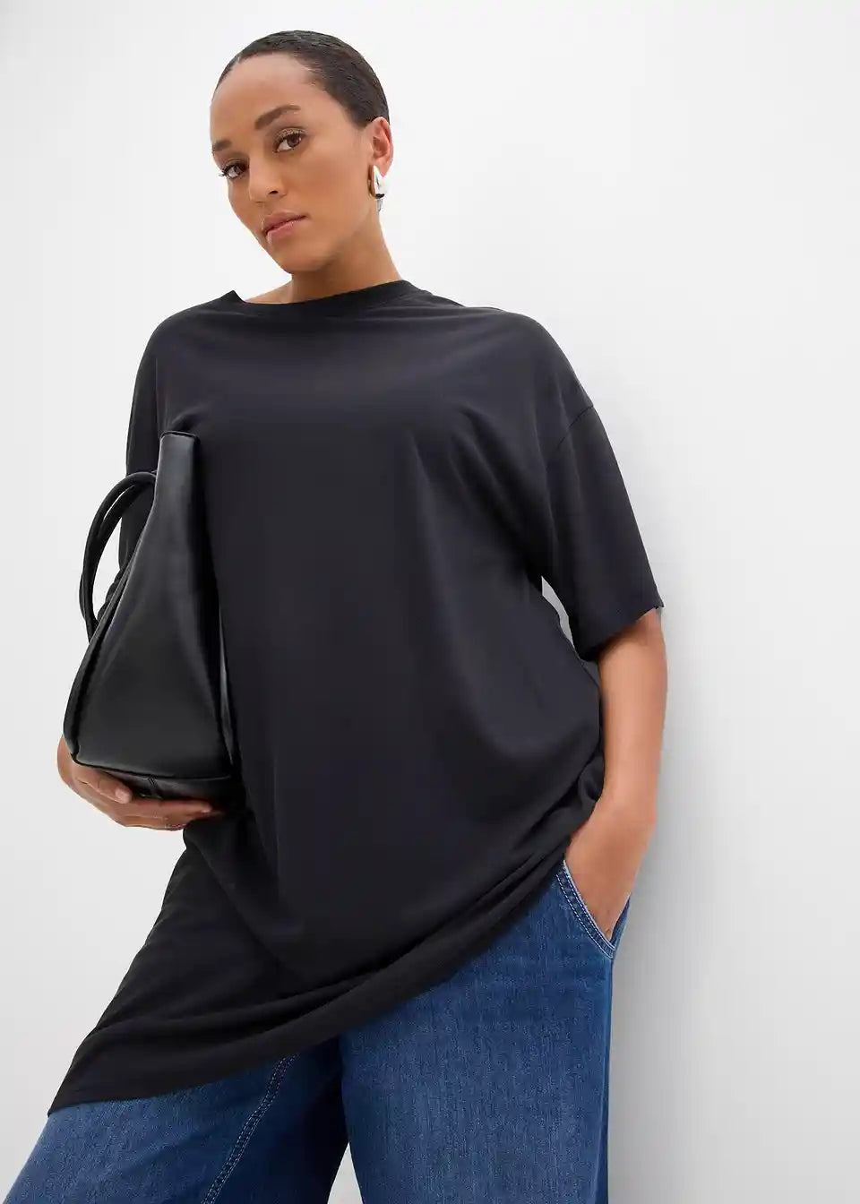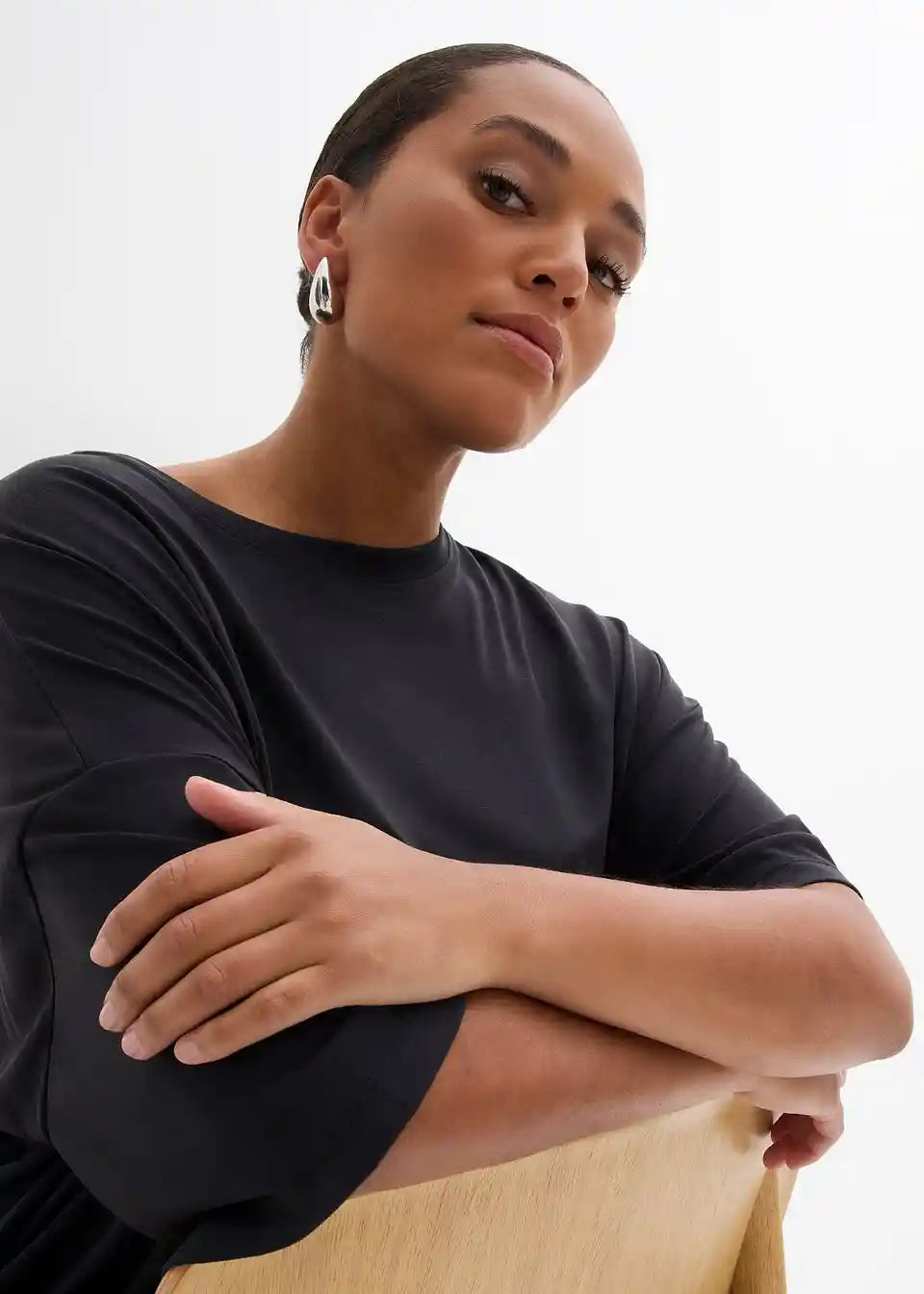 Kurzarmshirt mit asymmetrischen Saum aus Modal-Mix