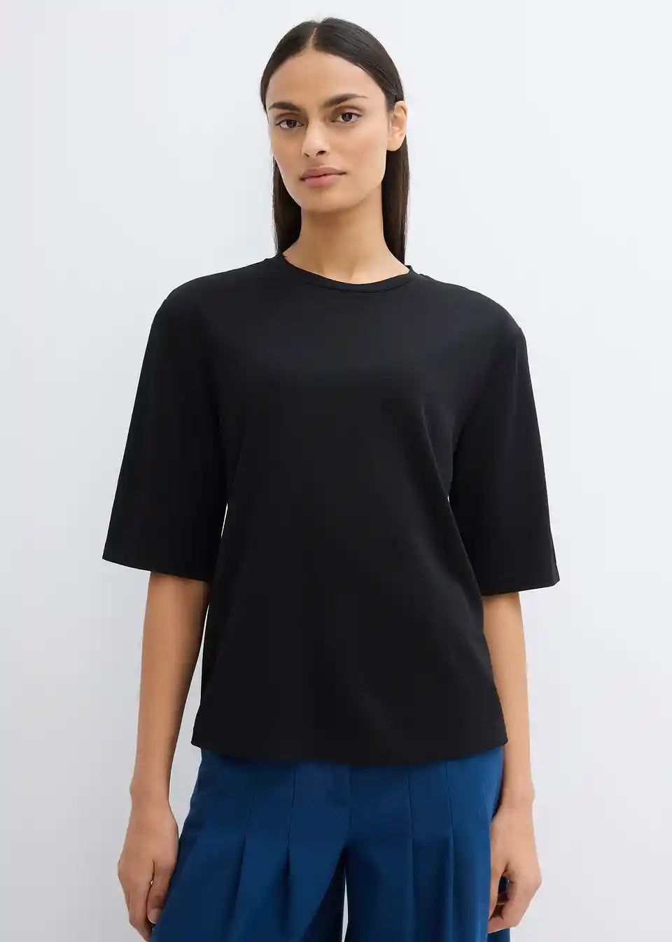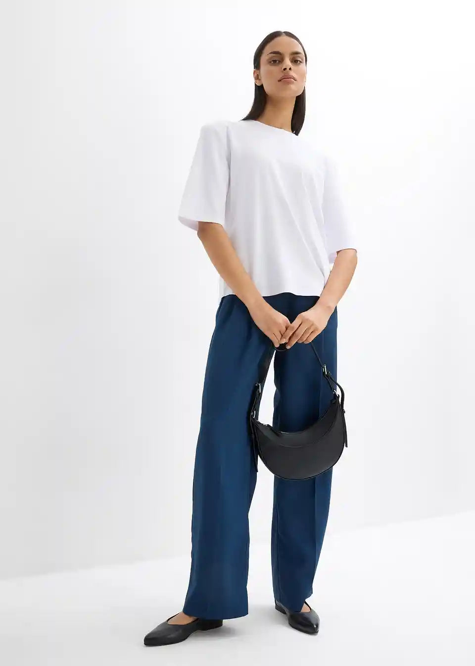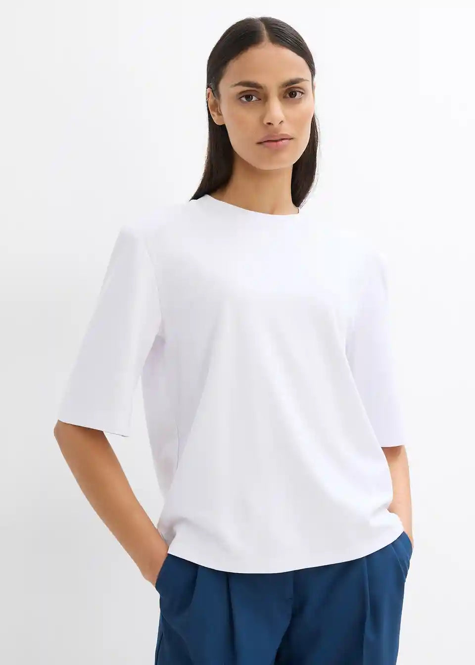 T-Shirt mit lockerer Passform, Schulterpolstern und verlängerten kurzen Ärmeln