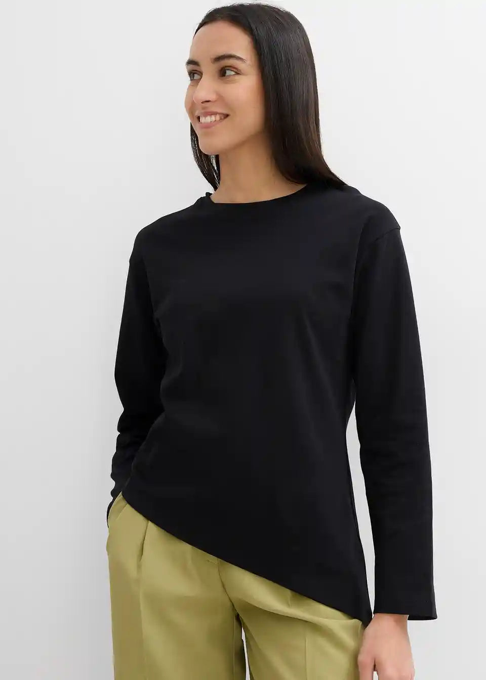 Langarmshirt mit asymmetrischem Saum aus Baumwolle