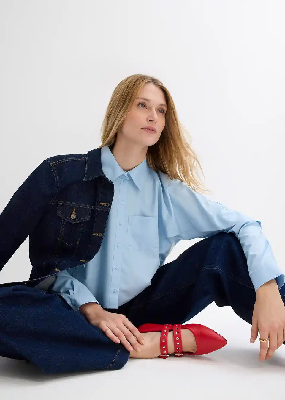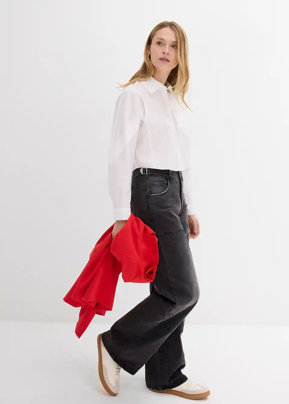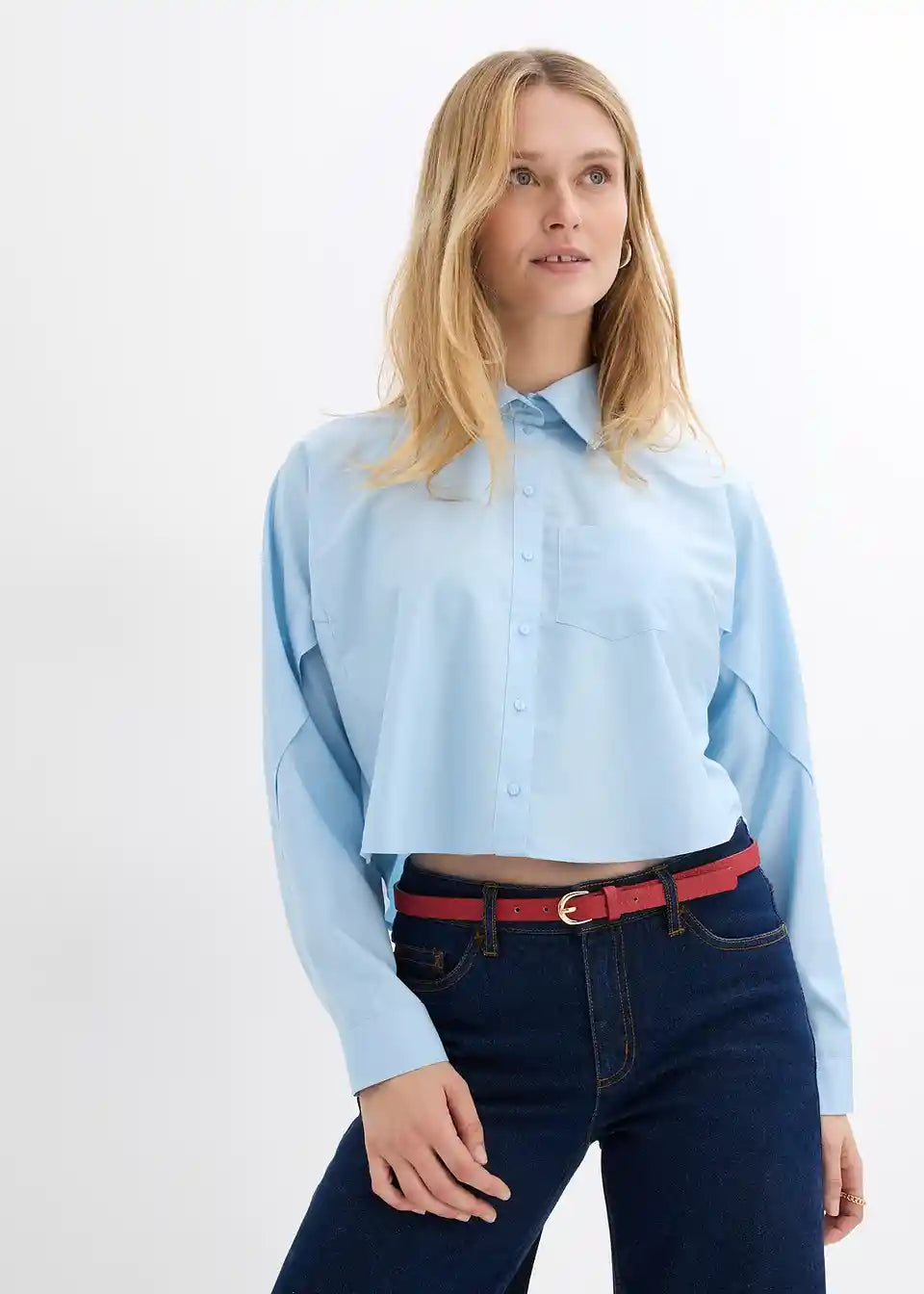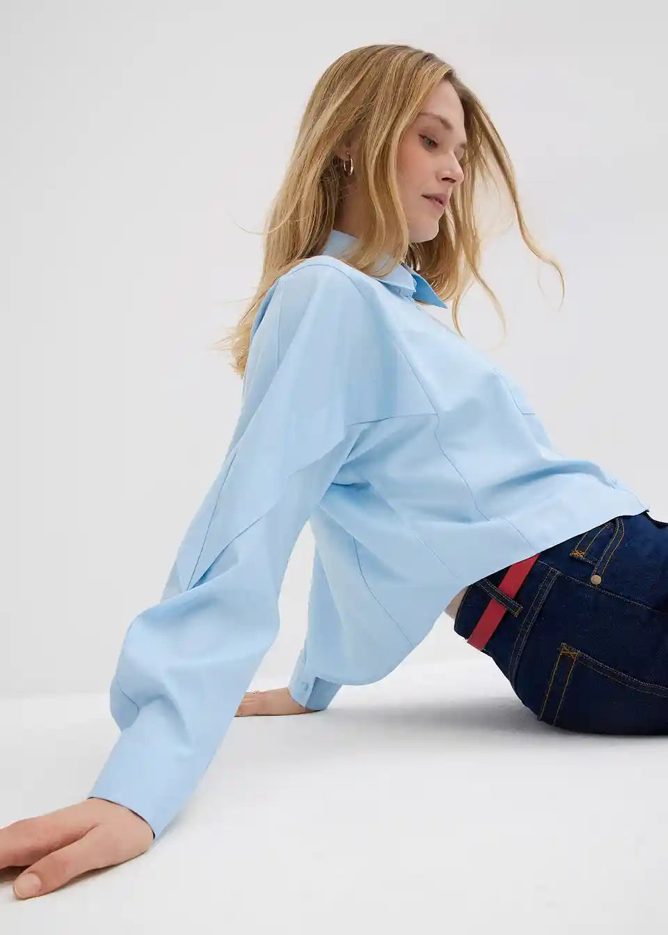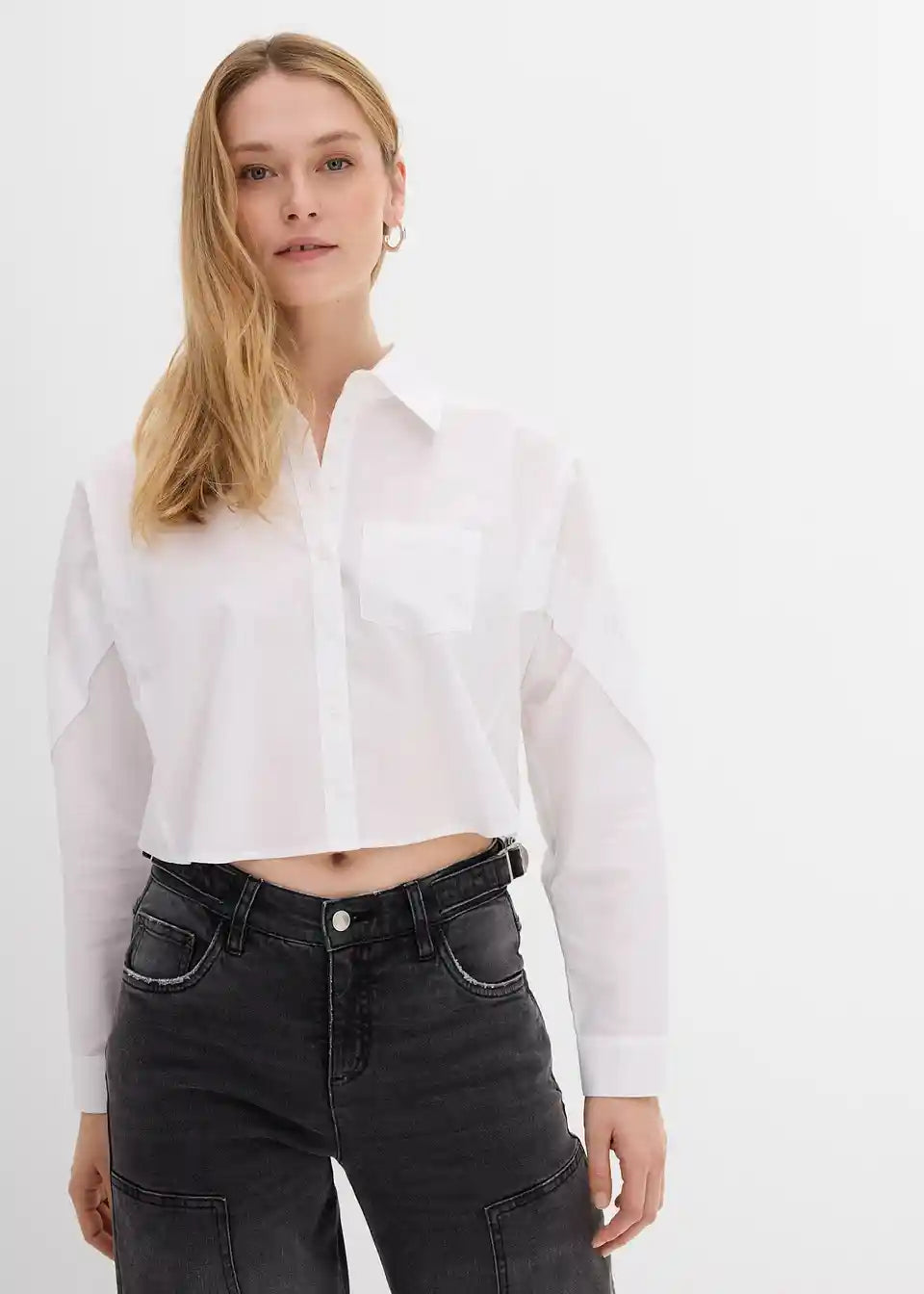 Modische Cropped Bluse aus reiner Baumwolle im Boxy Schnitt