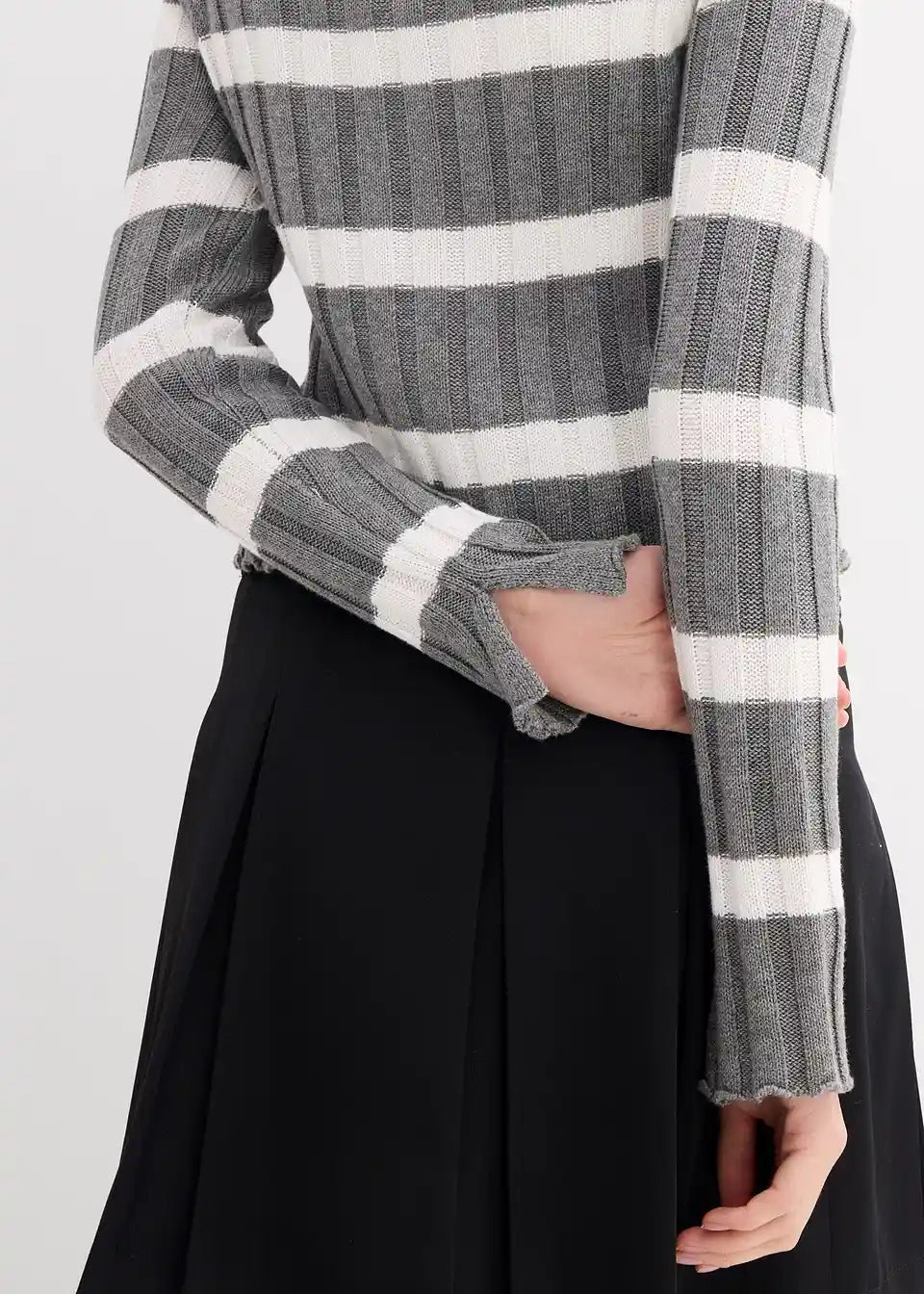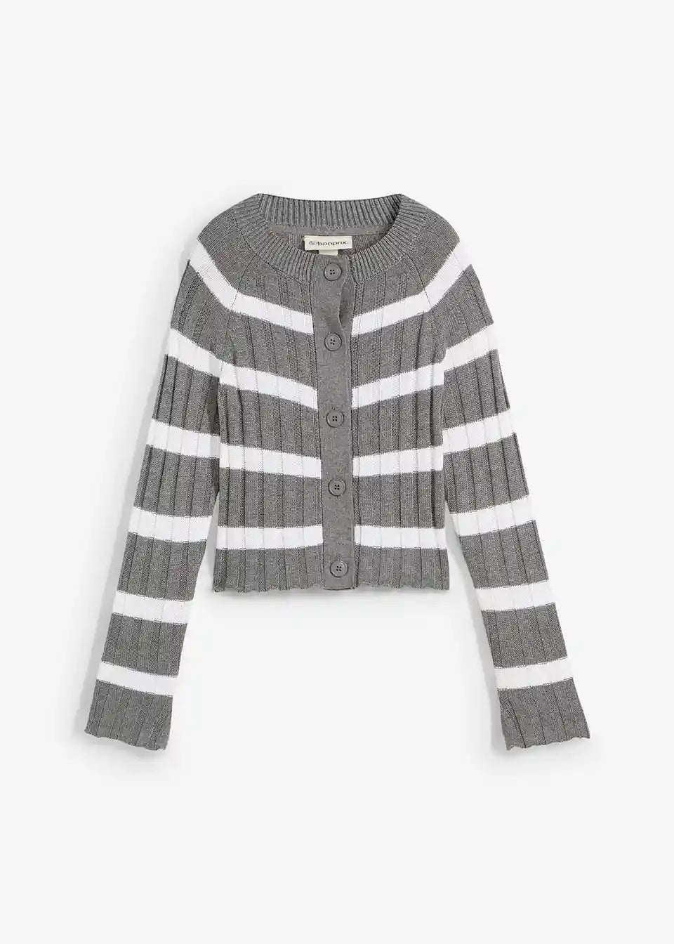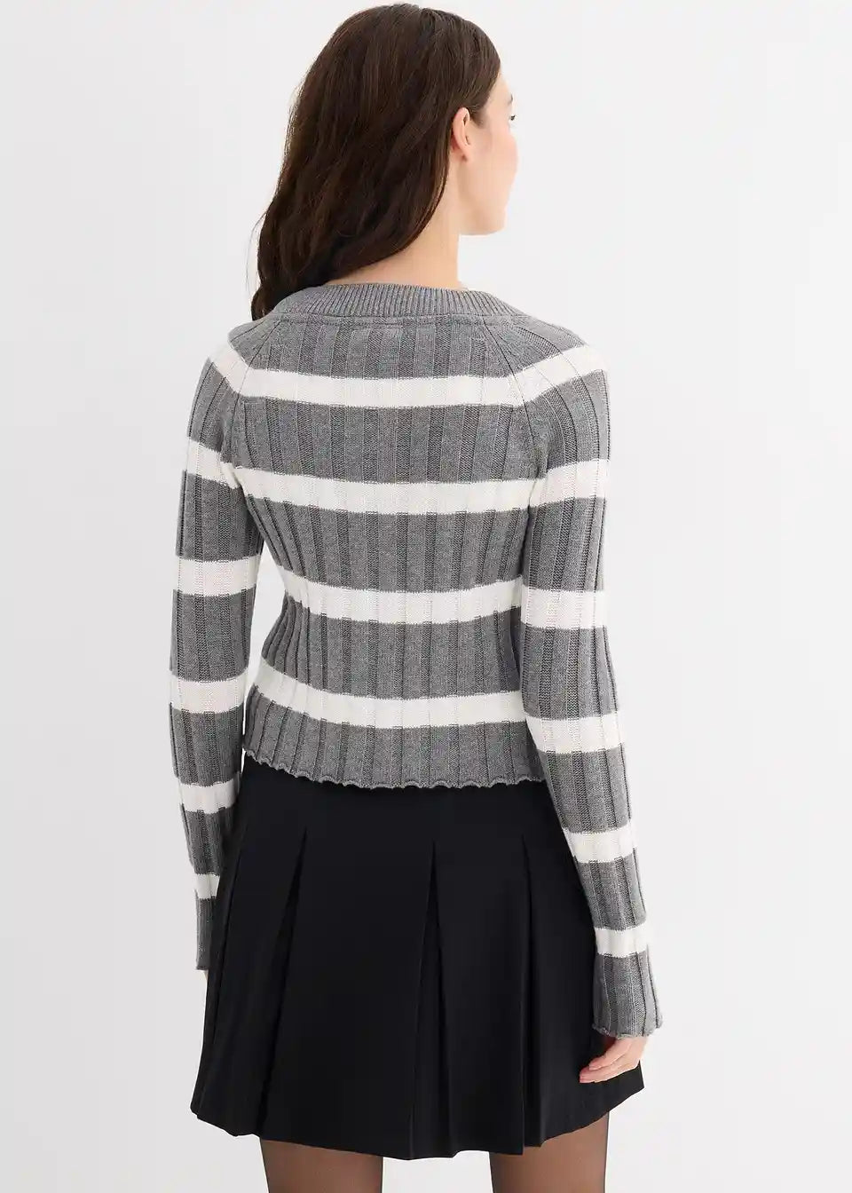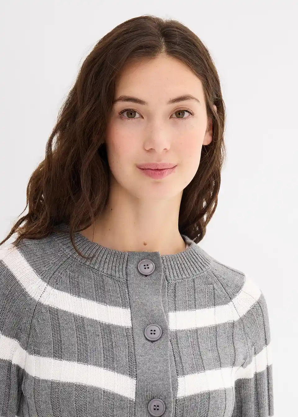 Kurze gerippte Strickjacke mit Knopfleiste und Streifendesign