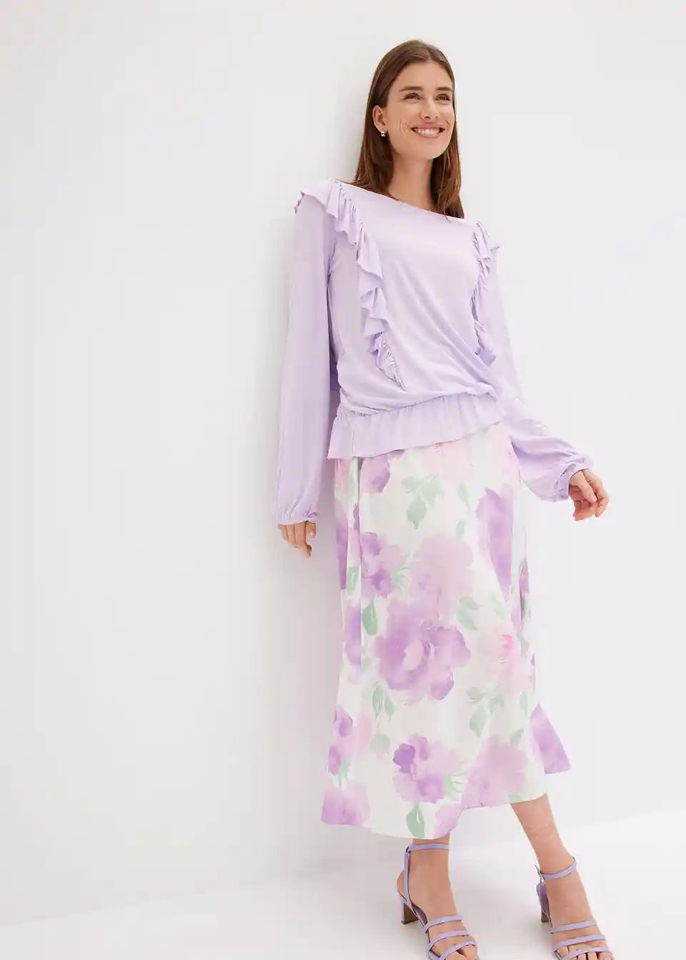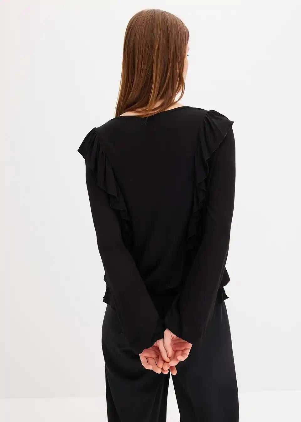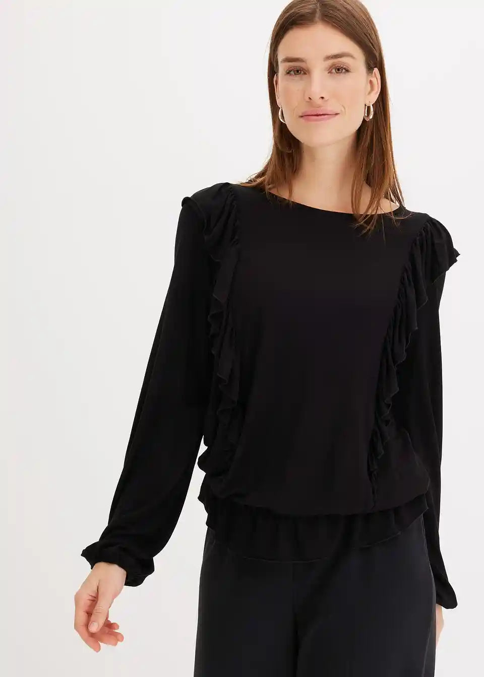 Softes Jerseybluse mit Volants und Puffärmeln