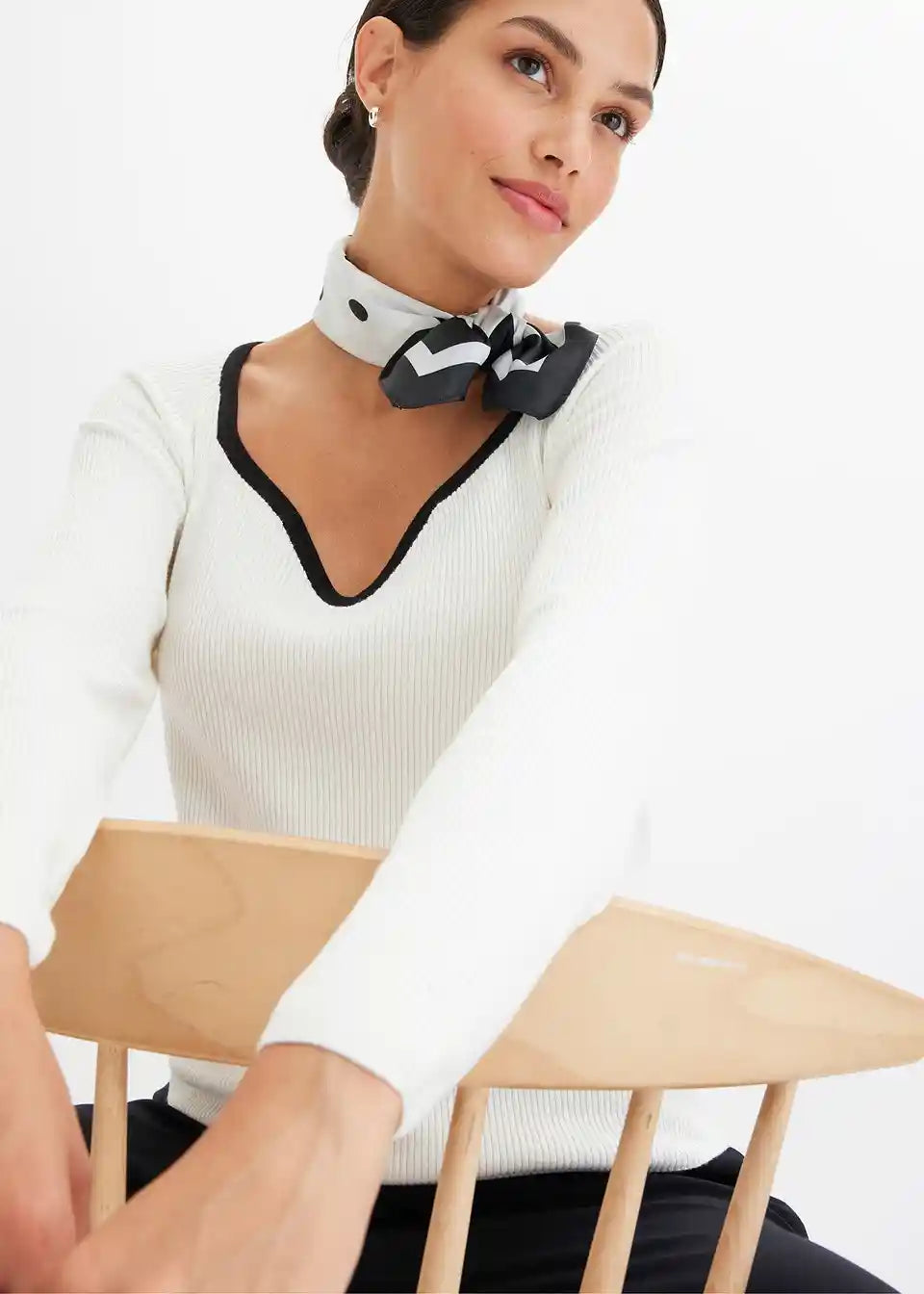 Pullover mit Kontrast-Piping am Ausschnitt