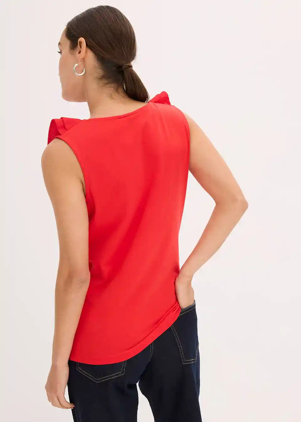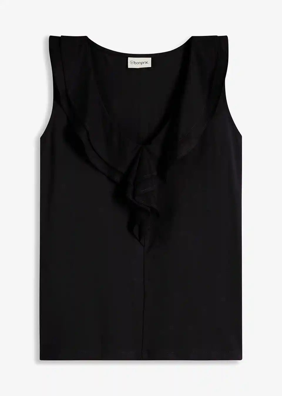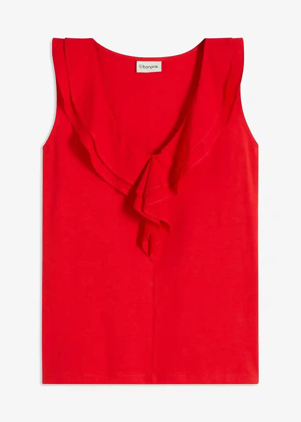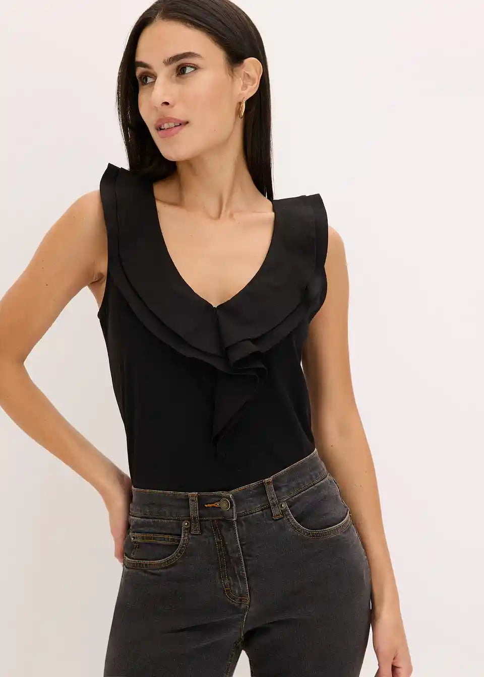 modisches Jerseytop mit Volants entlang des Ausschnitts.