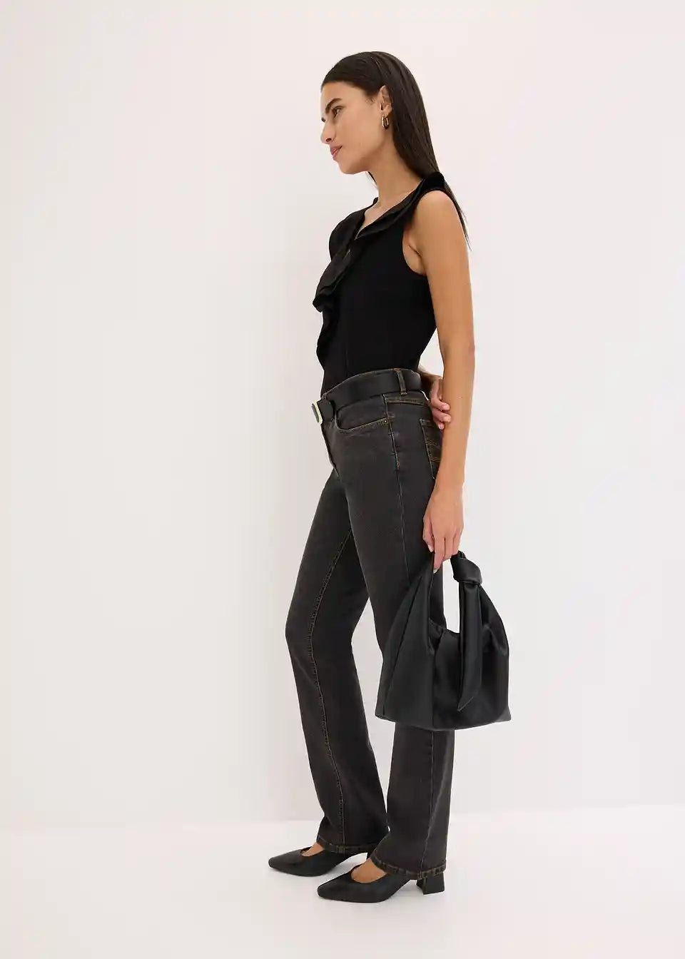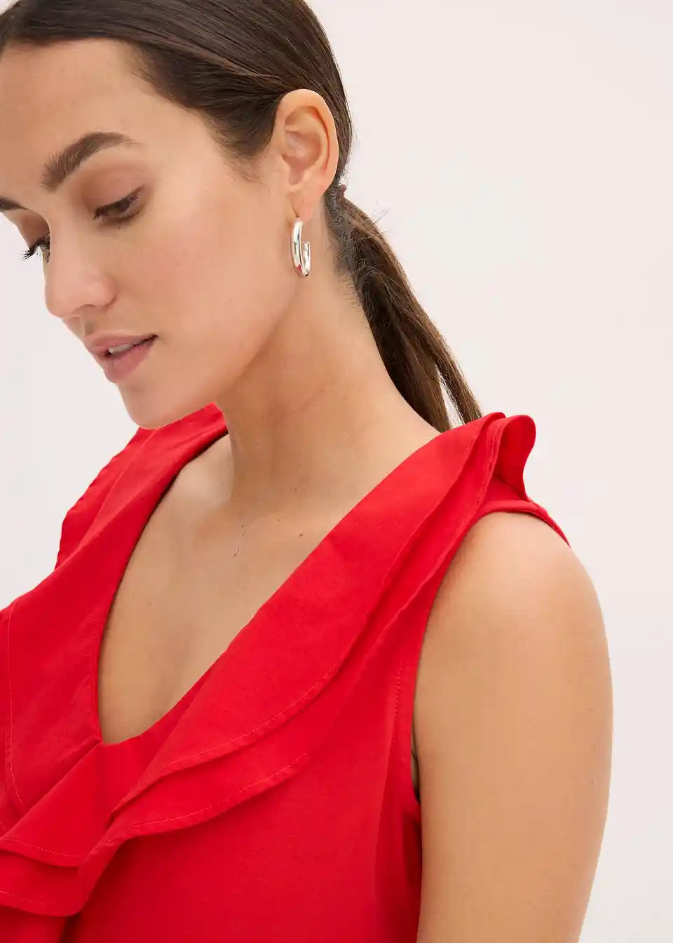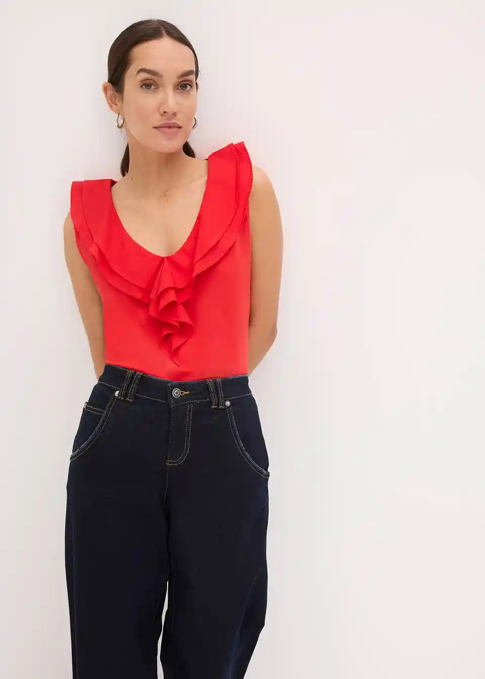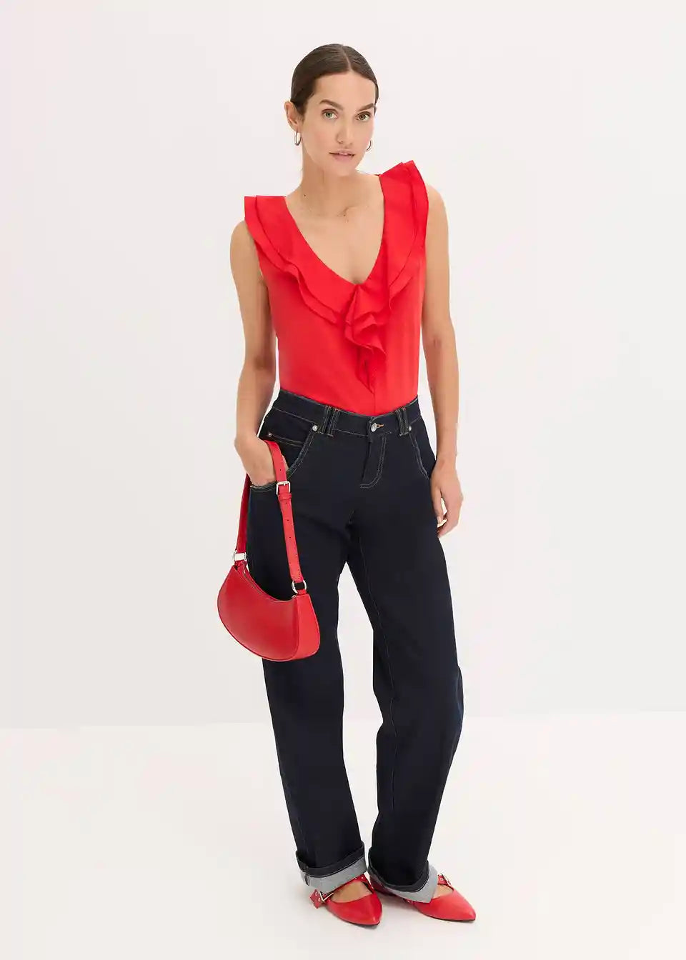 modisches Jerseytop mit Volants entlang des Ausschnitts.