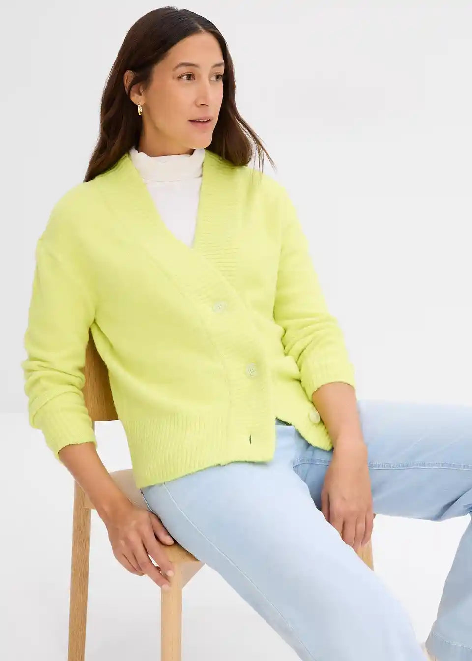 Kastige Strickjacke mit Knopfleiste, verkürzt