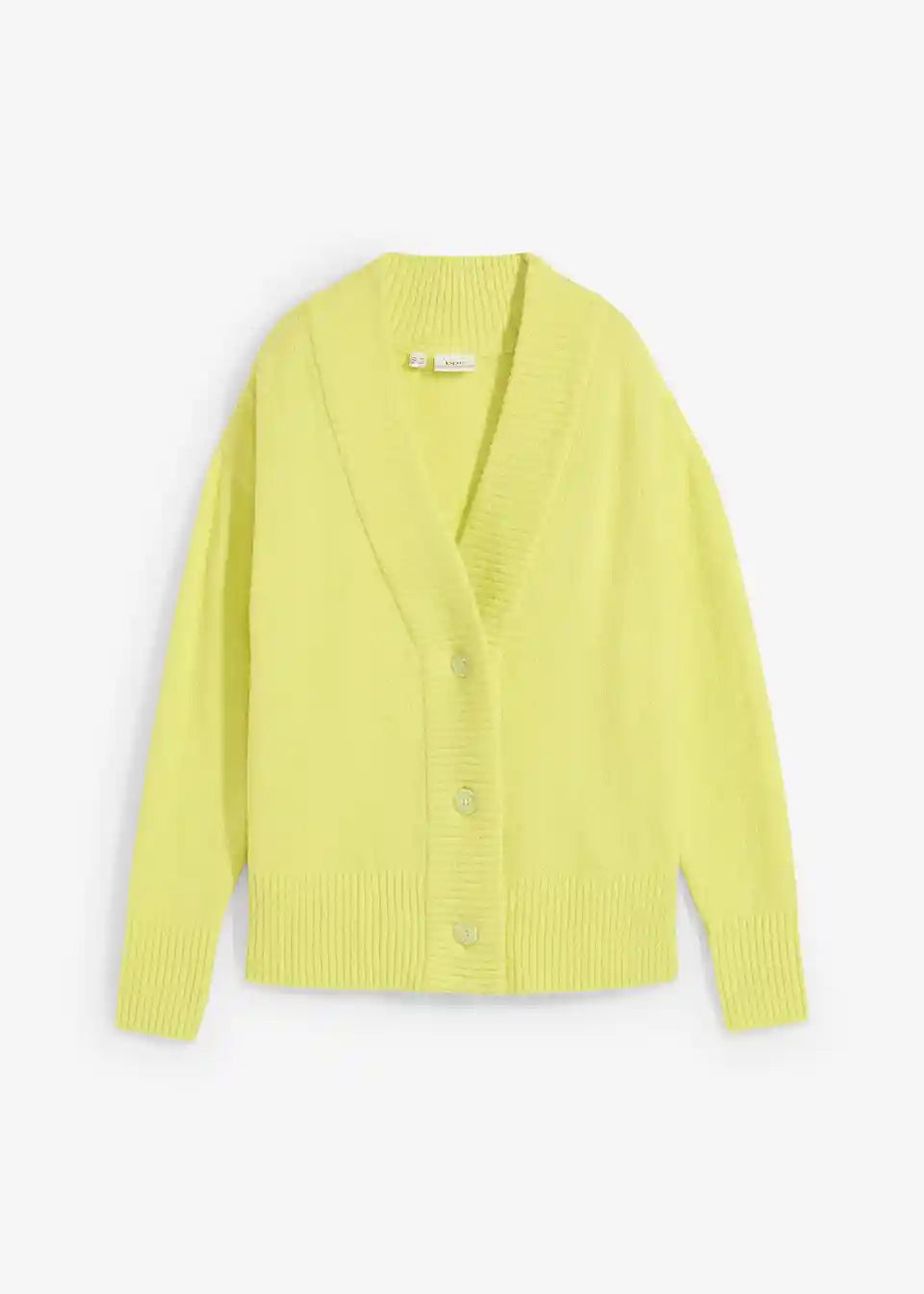 Kastige Strickjacke mit Knopfleiste, verkürzt