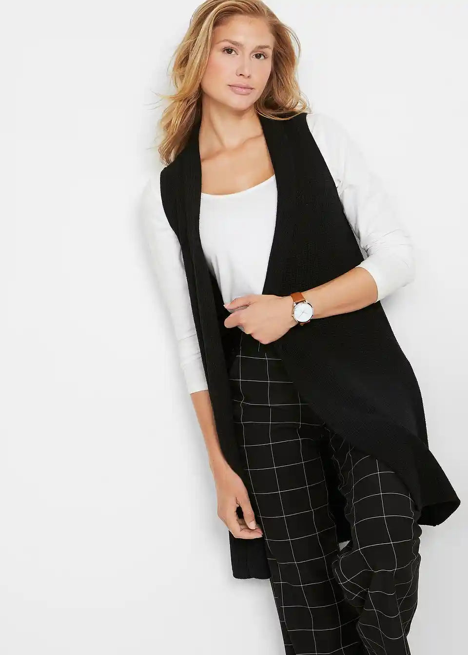 Longstrickweste in Rippstruktur