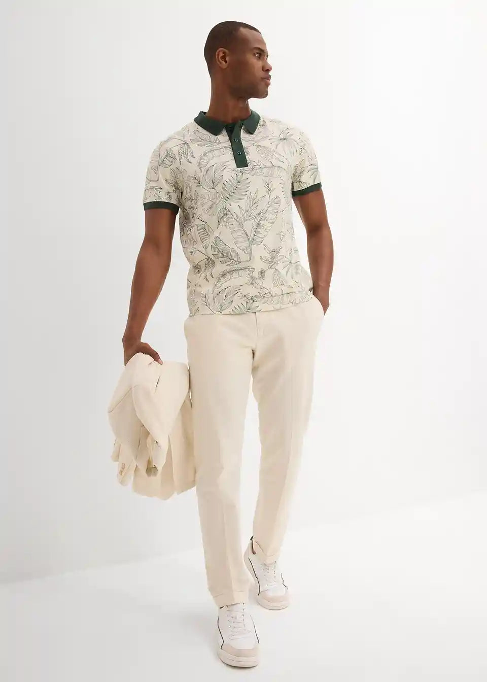 Modisch bedrucktes Jersey-Poloshirt aus reiner Baumwolle