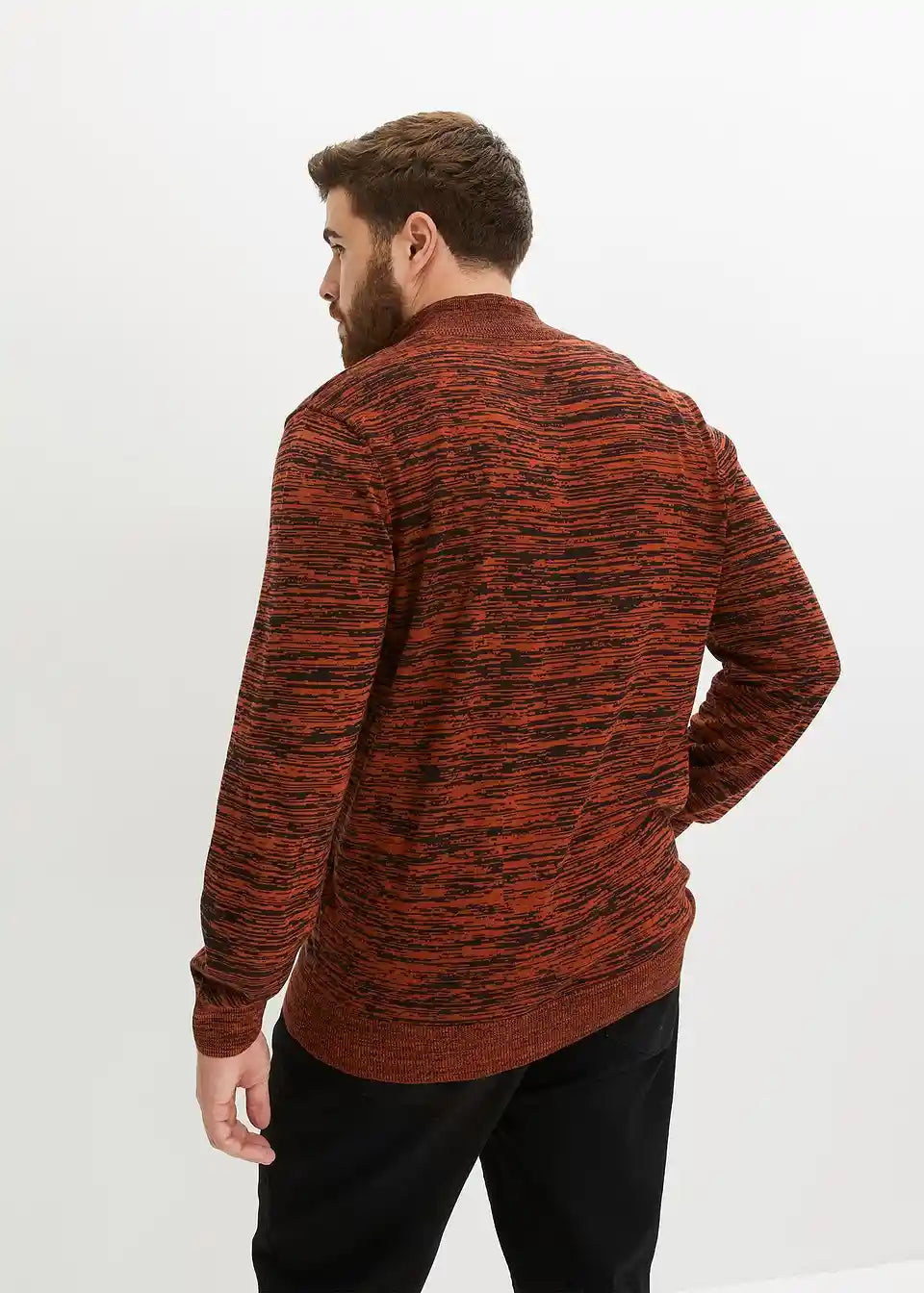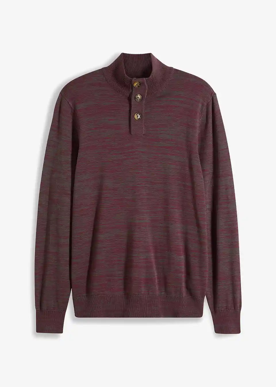 Modisch melierter Pullover mit Stehkragen und Knopfleiste