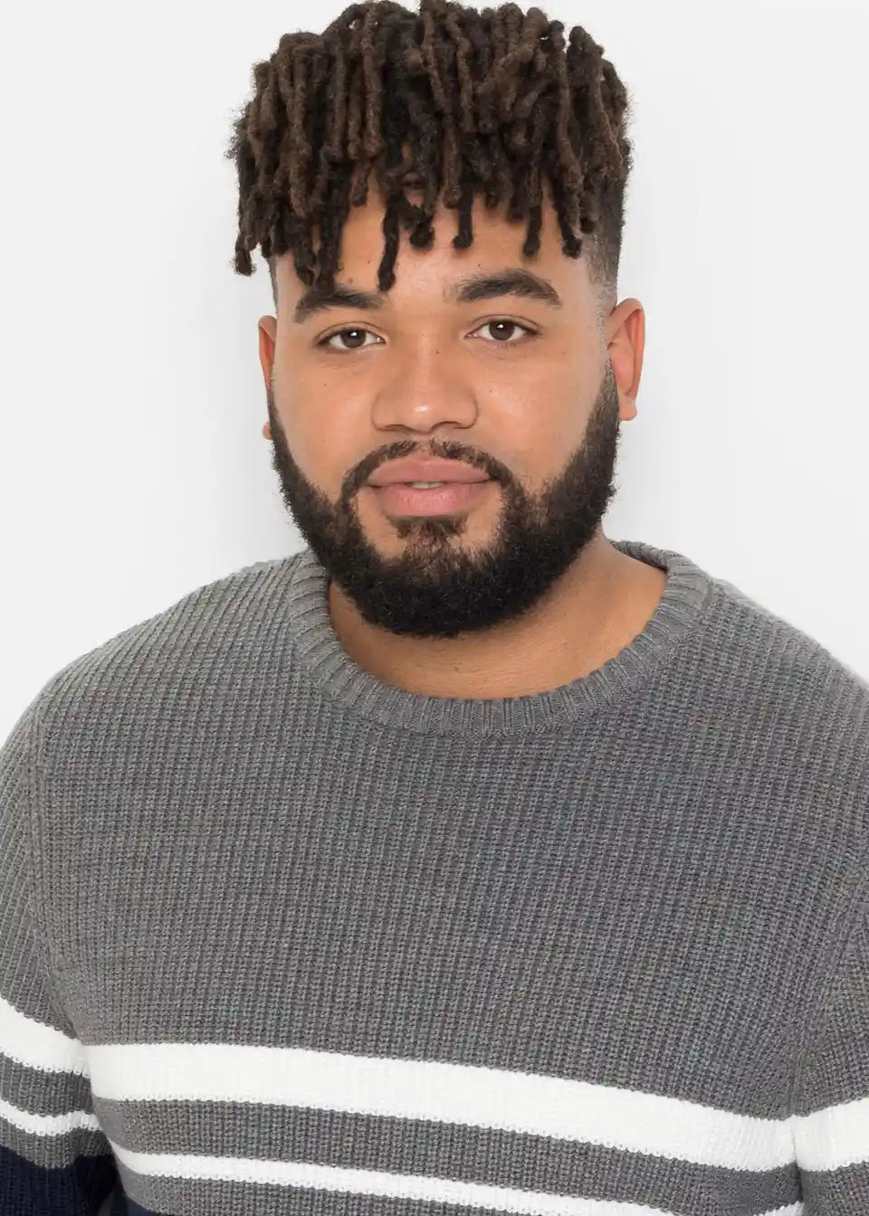 Farbe:dunkelblau/weiß/grau meliert quer gestreift