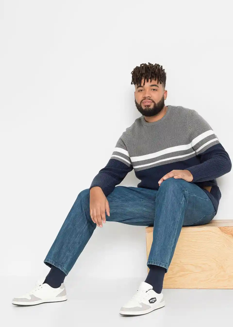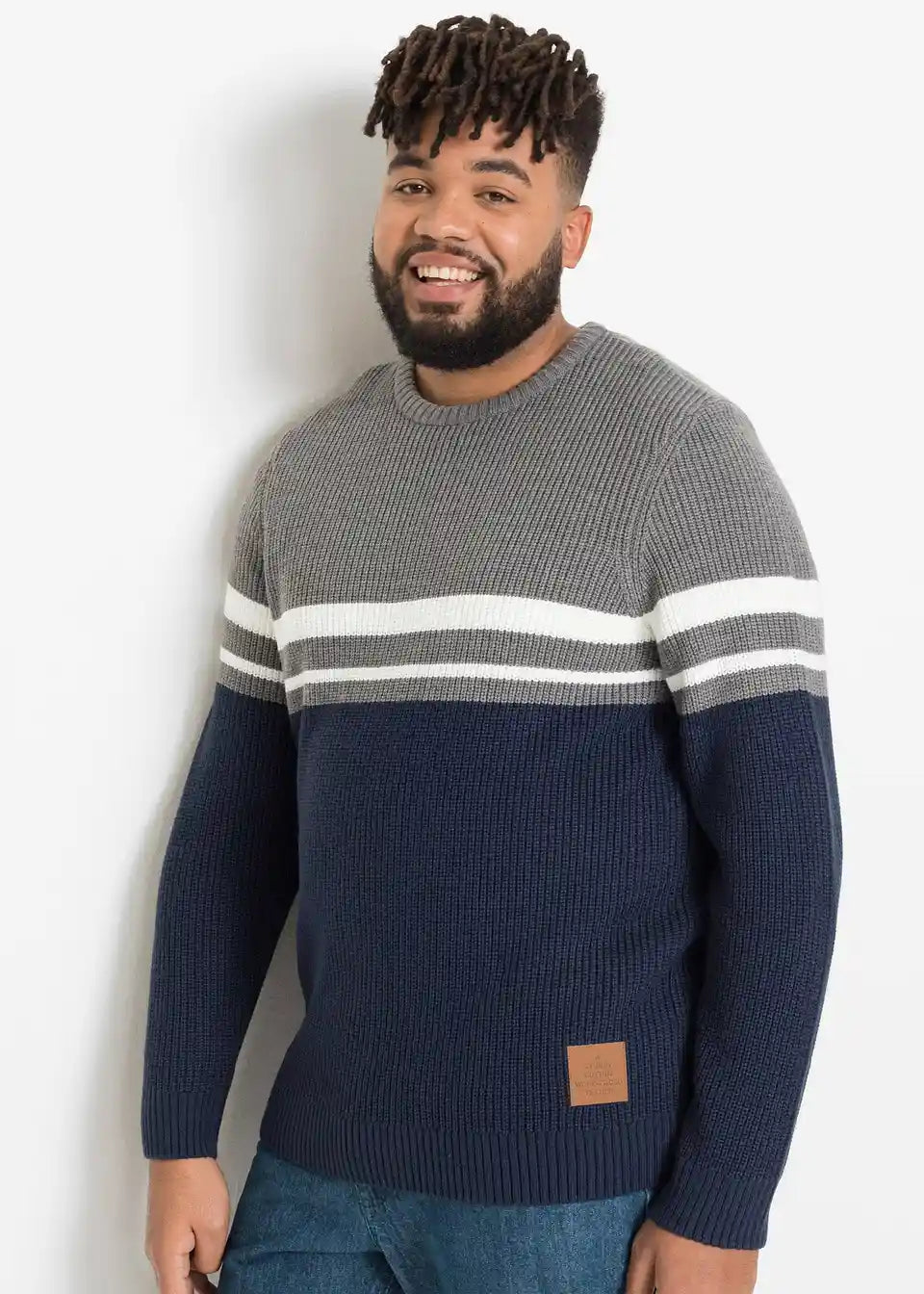 Kerniger Pullover in Colourblocking mit Rundhalsausschnitt
