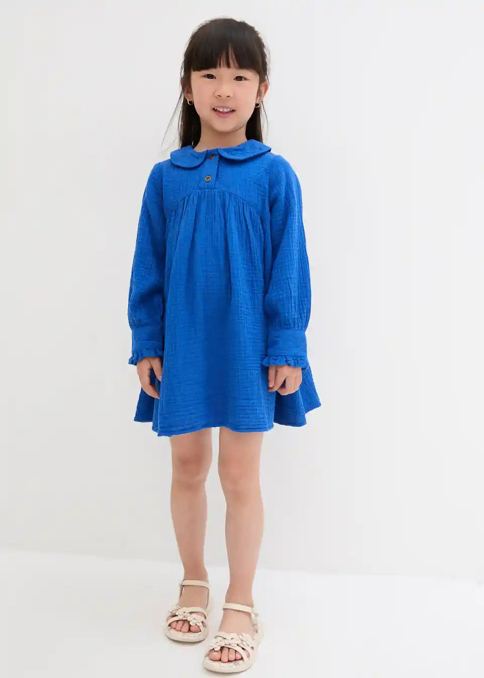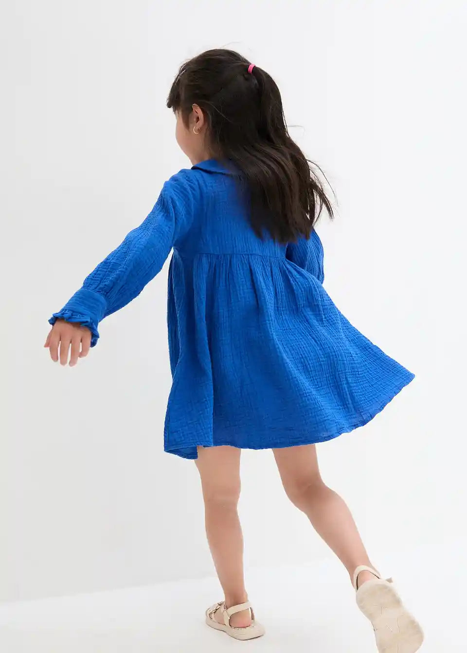 Tolles Mädchen Musselin Kleid mit Knopfleiste