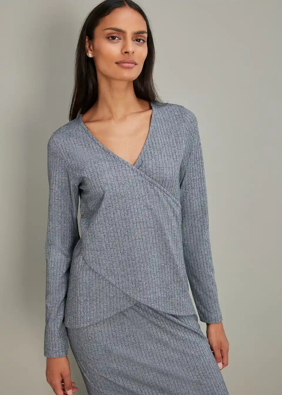 Modische Rippshirt in schöner Wickeloptic, figurnahe Passform.