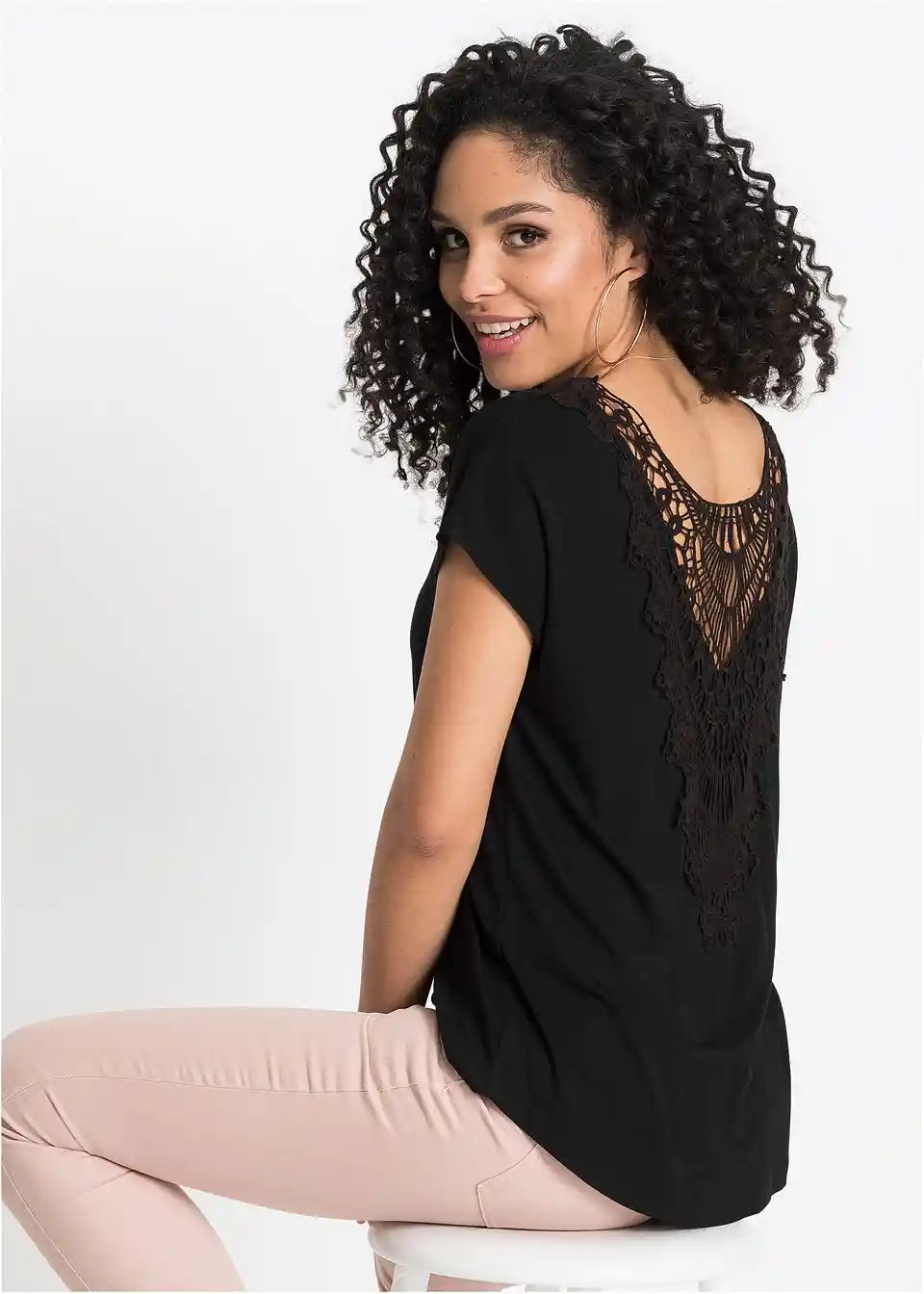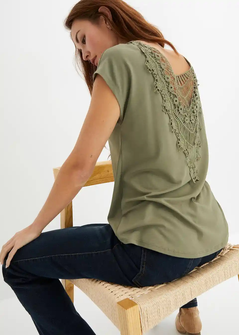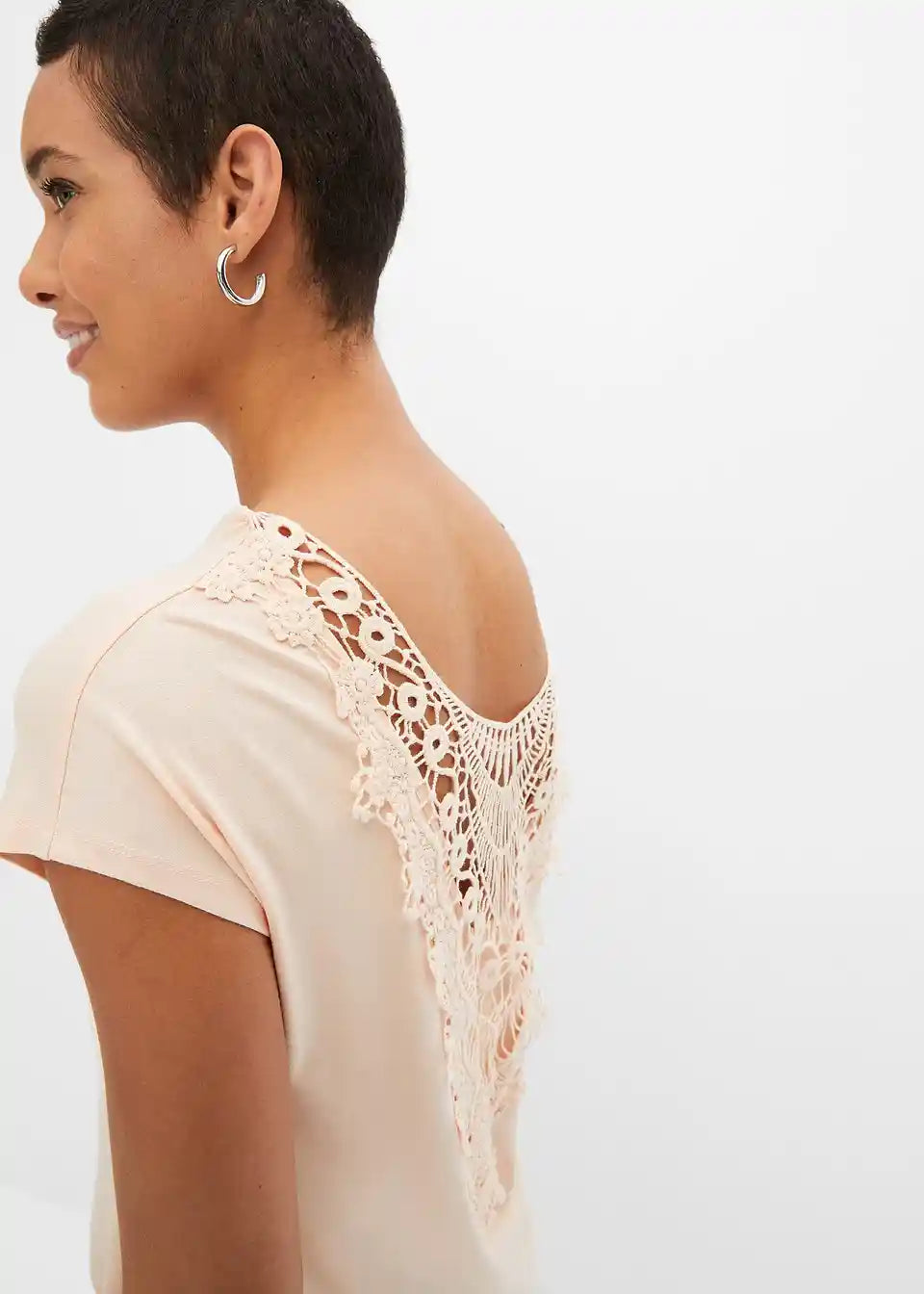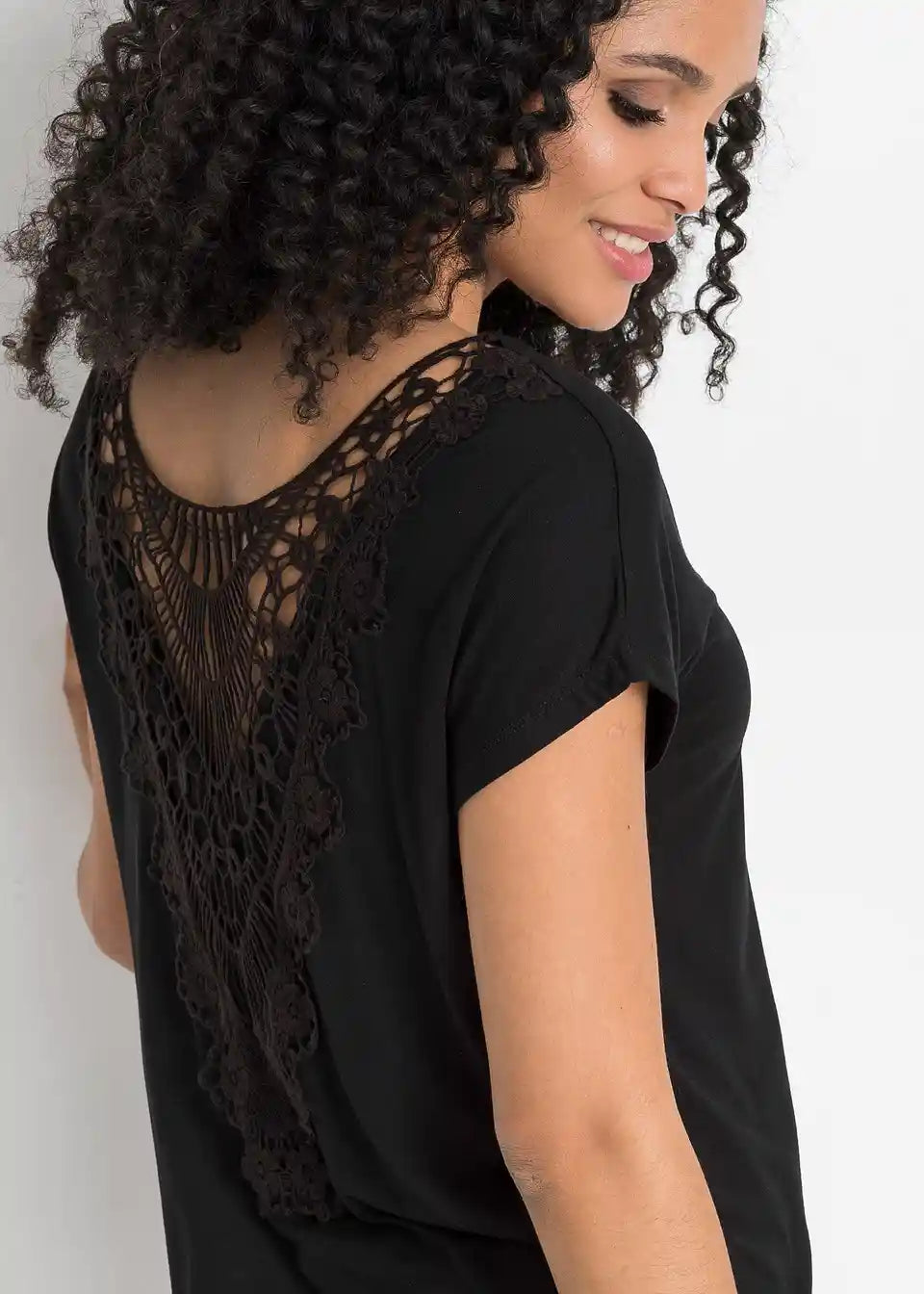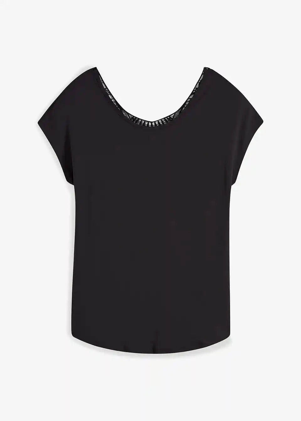 Das Shirt der Marke BODYFLIRT ist mit seinem besonderen Rückenteil ein modischer Blickfang. Der aufwendig gearbeitete Einsatz aus transparenter Spitze lässt die Haut hindurchscheinen und verleiht dem Shirt seine attraktive Optik. Dazu harmonieren der U-Boot-Ausschnitt und die kurzen Ärmel.Mit Jeansshorts und Sandalen lässt sich das Shirt in der Freizeit leger kombinieren.