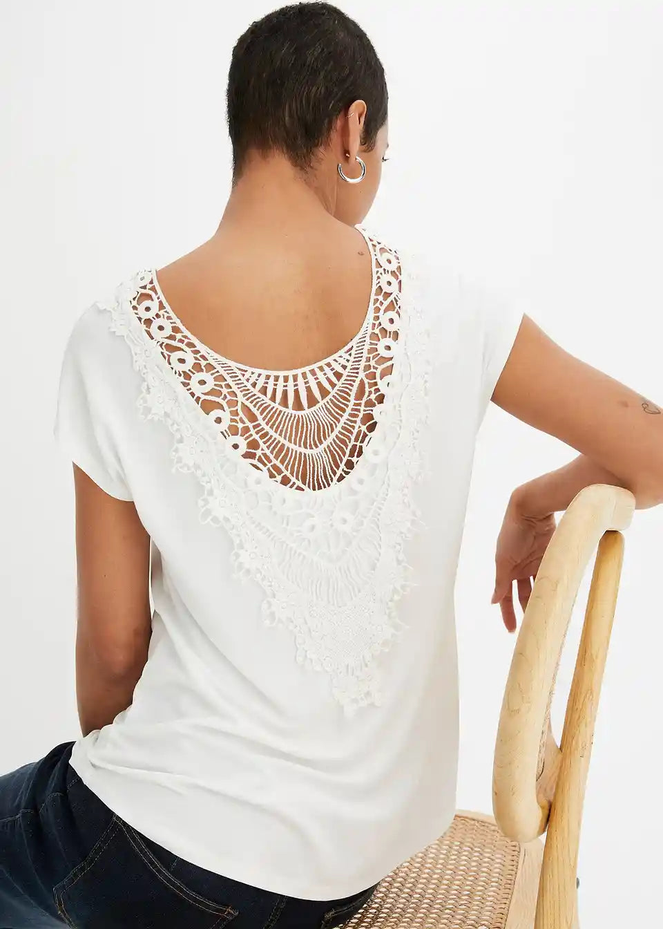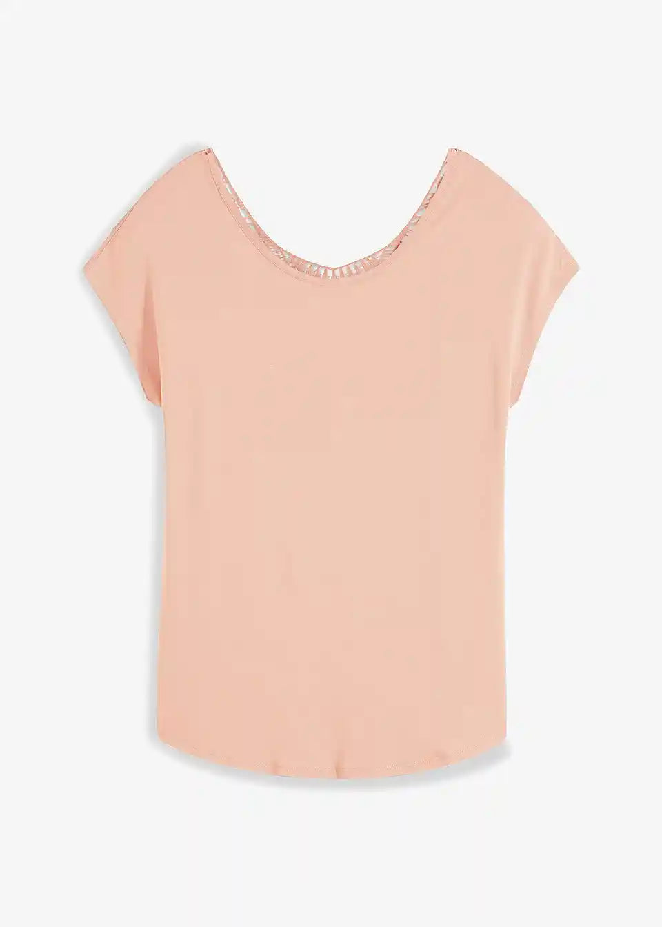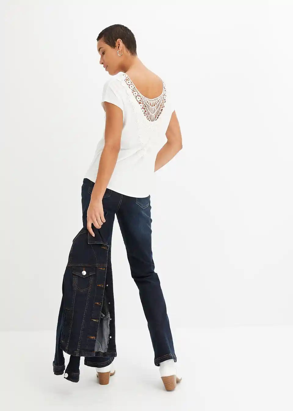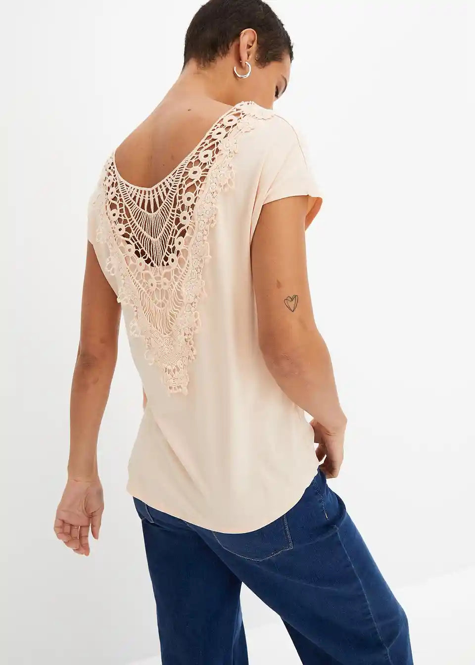Das Shirt der Marke BODYFLIRT ist mit seinem besonderen Rückenteil ein modischer Blickfang. Der aufwendig gearbeitete Einsatz aus transparenter Spitze lässt die Haut hindurchscheinen und verleiht dem Shirt seine attraktive Optik. Dazu harmonieren der U-Boot-Ausschnitt und die kurzen Ärmel.Mit Jeansshorts und Sandalen lässt sich das Shirt in der Freizeit leger kombinieren.