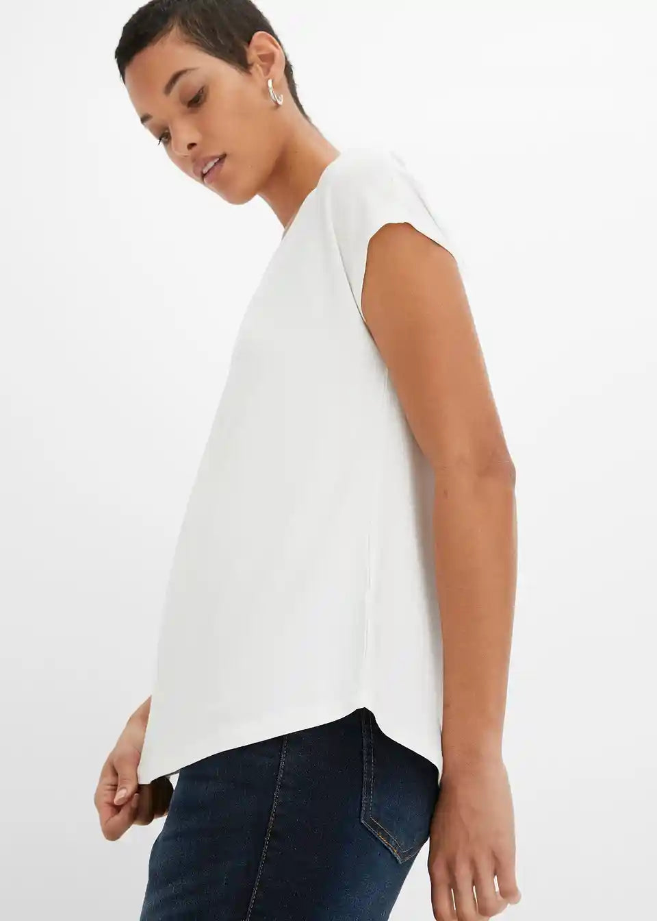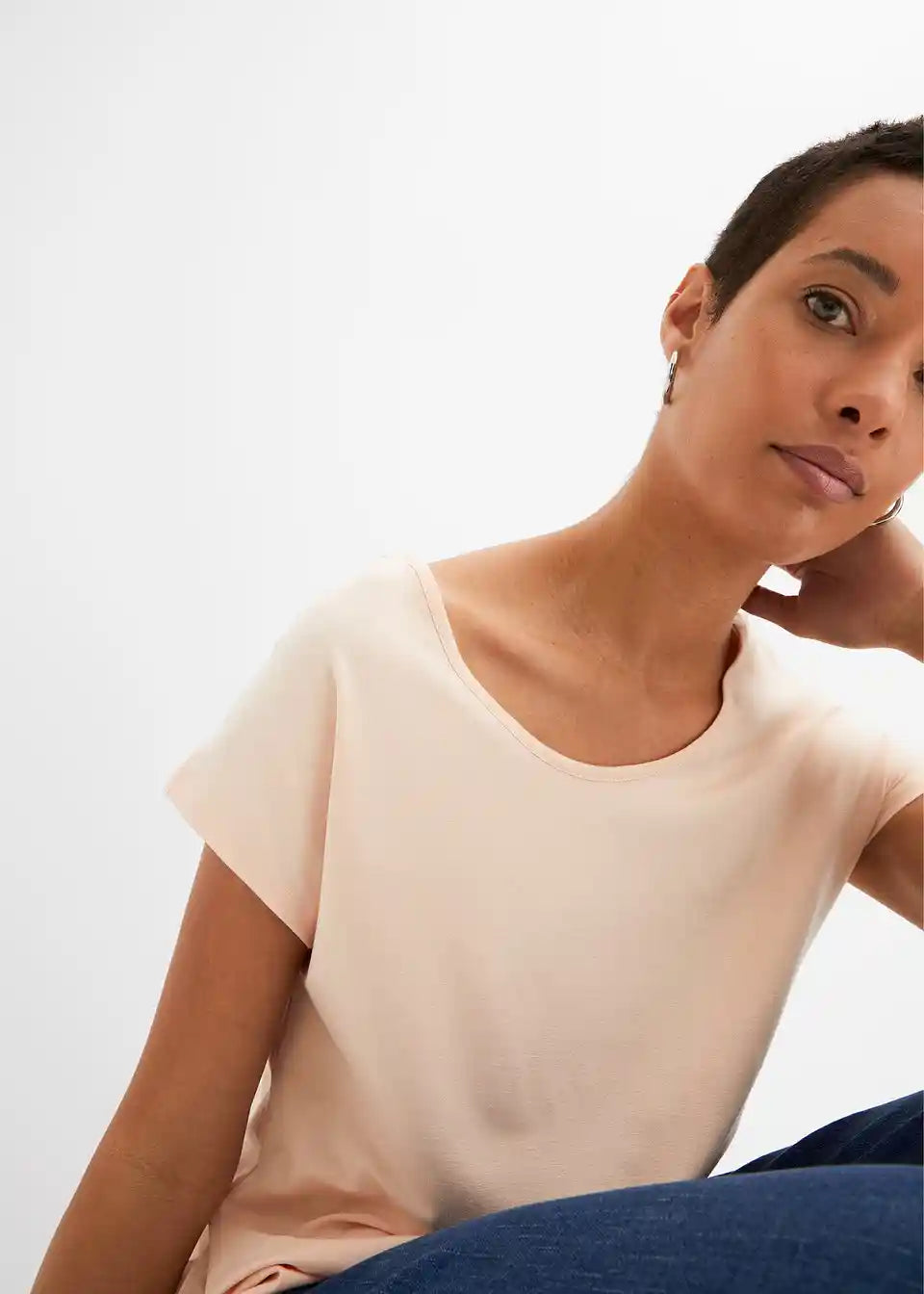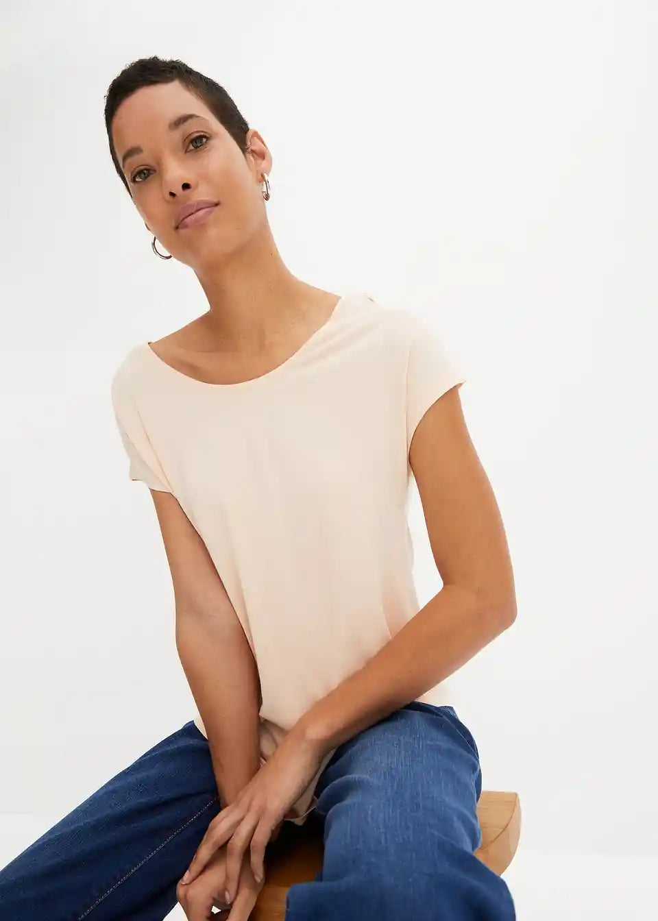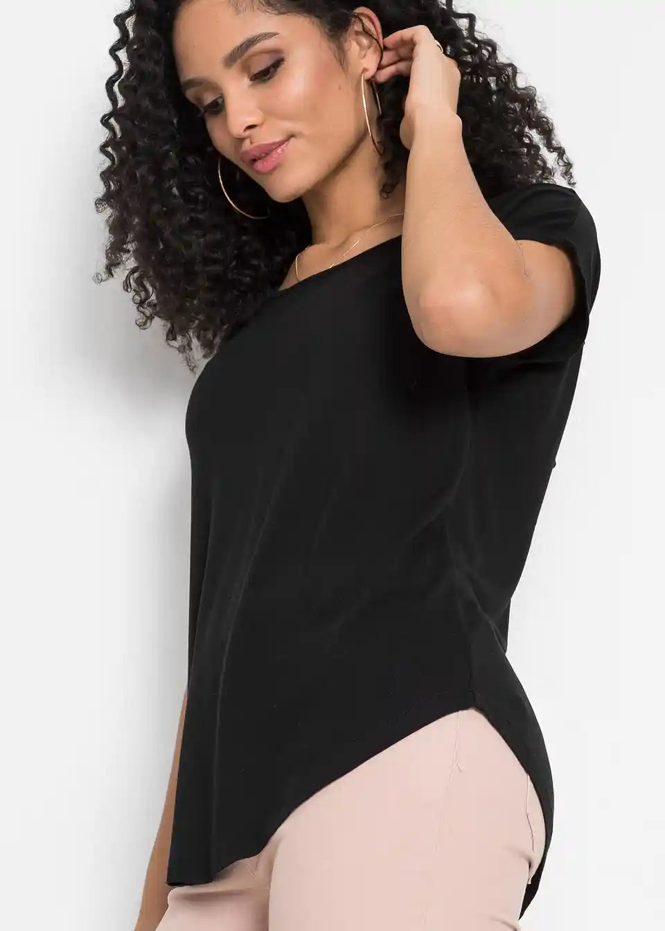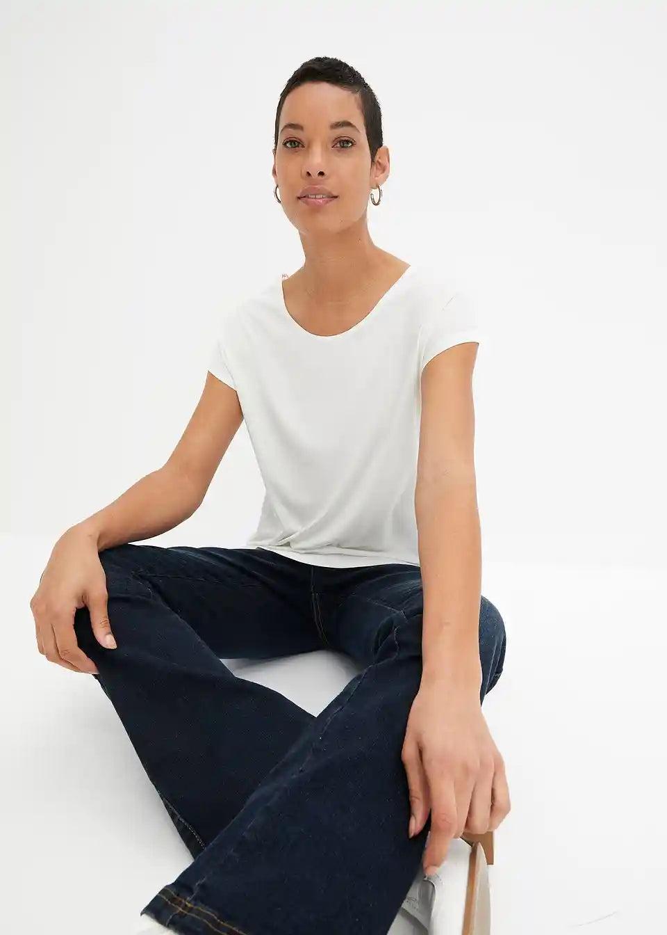 Das Shirt der Marke BODYFLIRT ist mit seinem besonderen Rückenteil ein modischer Blickfang. Der aufwendig gearbeitete Einsatz aus transparenter Spitze lässt die Haut hindurchscheinen und verleiht dem Shirt seine attraktive Optik. Dazu harmonieren der U-Boot-Ausschnitt und die kurzen Ärmel.Mit Jeansshorts und Sandalen lässt sich das Shirt in der Freizeit leger kombinieren.