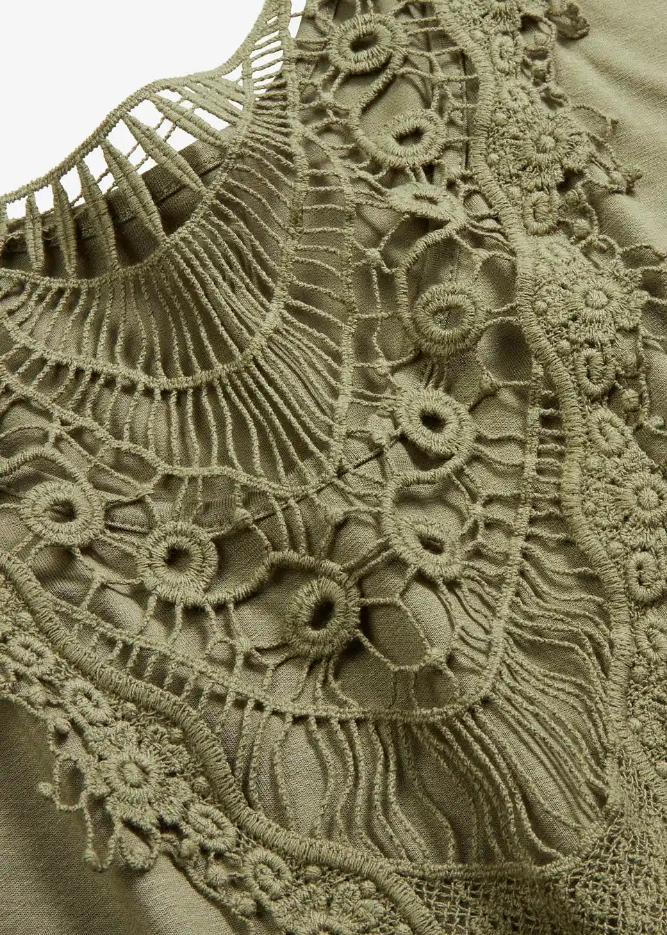 Material:Obermaterial: 95% Viskose (verifiziert), 5% Elasthan, Spitze: 100% Baumwolle