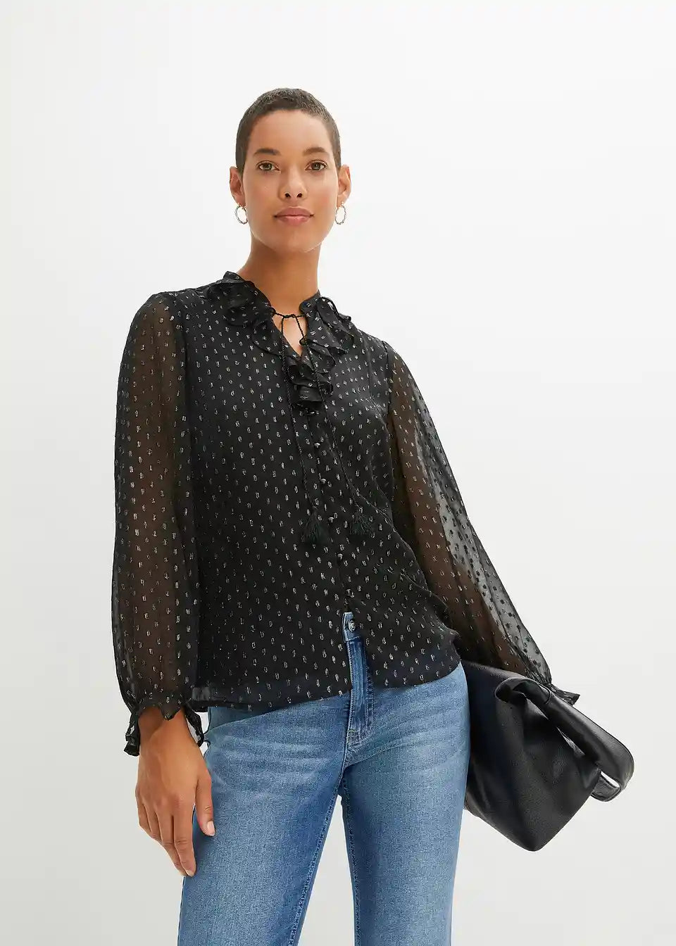 Feminine Bluse mit Volants und Glitzereffekt