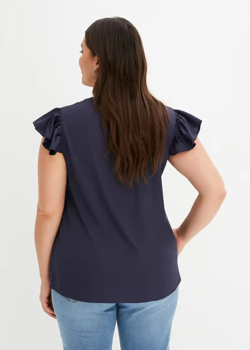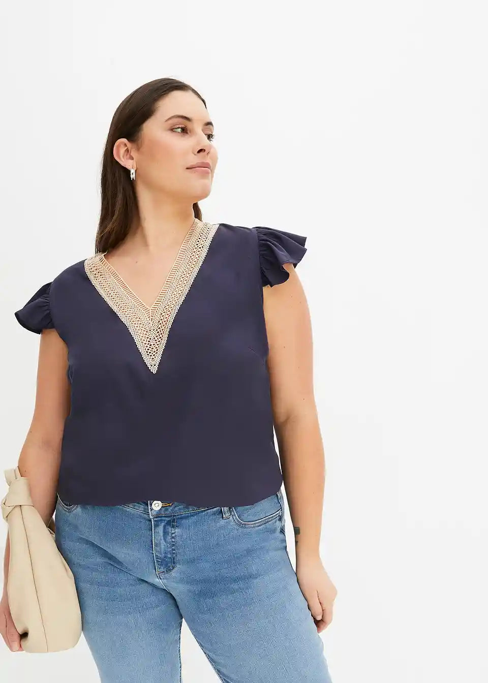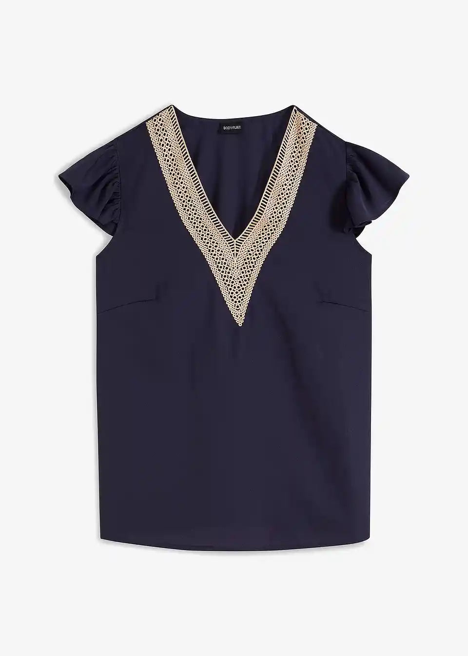 Kurzärmlige Bluse mit Spitzendetails am Ausschnitt