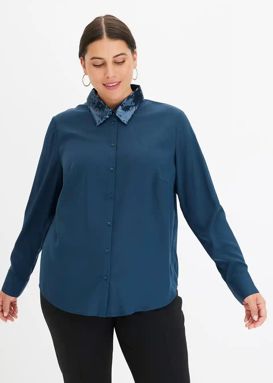 modische Bluse mit Pailletten-Applikation am Kragen