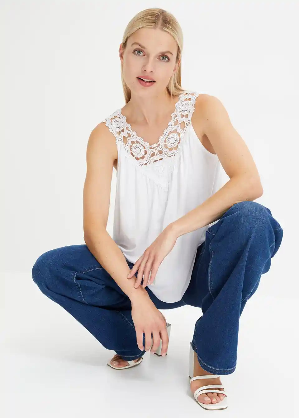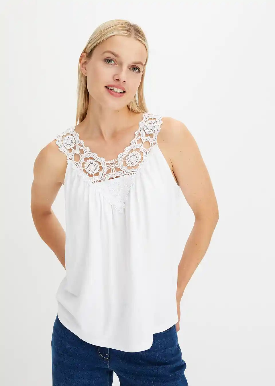 sommerliches Top mit Spitze vorne und hinten am V-Ausschnitt