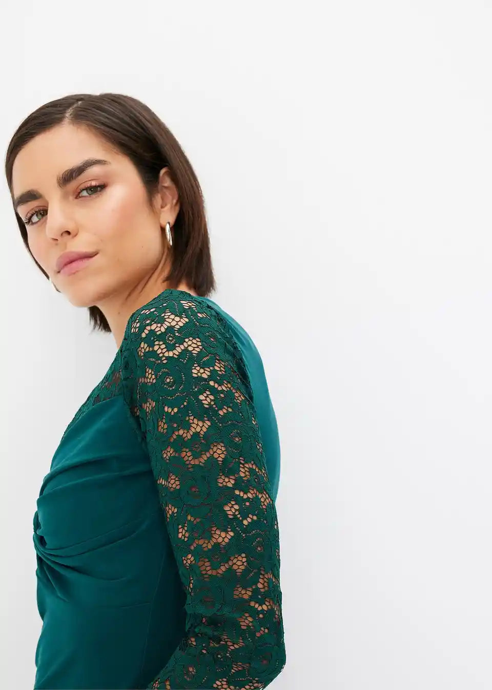 Sehr elegant und schick, Faebe intensives, dunkles Grün wie abgebildet, Stoff weich und kratzt nicht, sehr sexy.