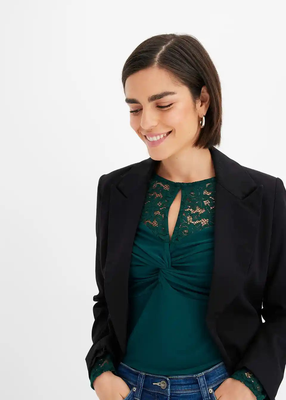 betont das Dekolleté, hüftbedeckend, mehr Komfort durch Stretch