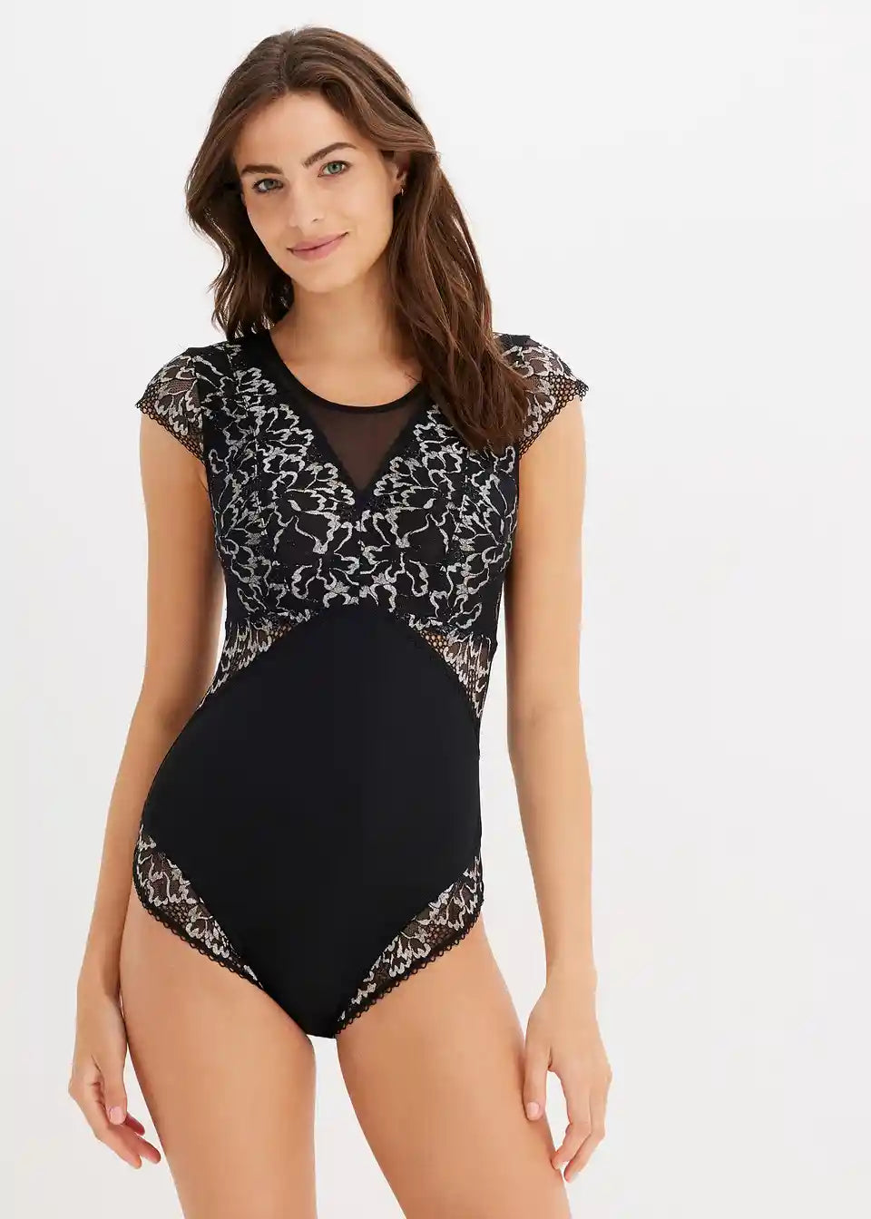 Obermaterial: 80% Polyamid (recycelt), 20% Elasthan, Futter: 90% Polyamid, 10% Elasthan, Spitze: 33% Polyamid, 30% Polyamid (recycelt), 24% Polyester, 13% Elasthan