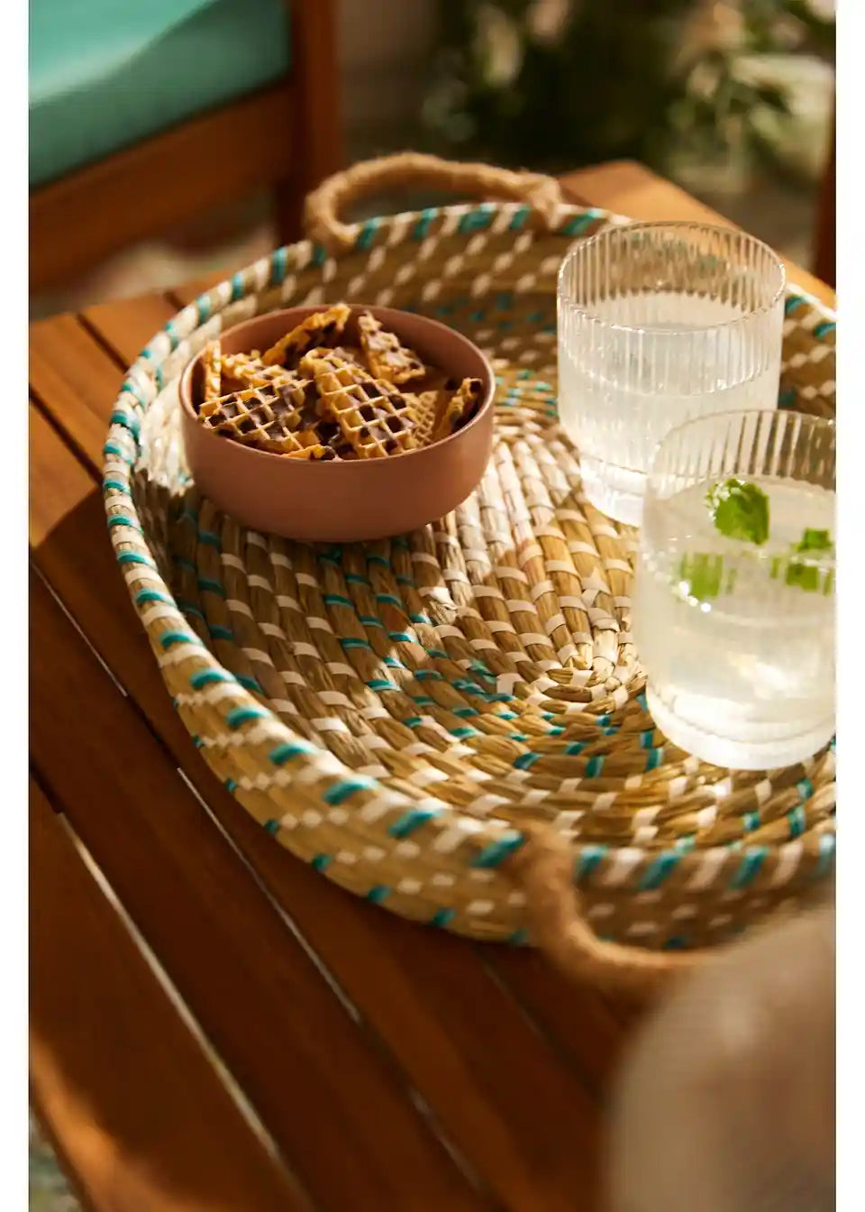 Das stilvolle Tablett vereint Ästhetik und Funktionalität und ist eine perfekte Ergänzung für jeden Wohnraum. Hergestellt aus hochwertigen Materialien, bietet es eine robuste Oberfläche, die sich ideal für das Servieren von Speisen und Getränken eignet. Die harmonische Farbgestaltung und das ansprechende Design verleihen dem Tablett eine besondere Note, die sich mühelos in verschiedene Einrichtungsstile einfügt. Mit praktischen Griffen ausgestattet, lässt es sich leicht transportieren und sorgt für eine ansprechende Präsentation von Snacks oder Dekorationselementen.