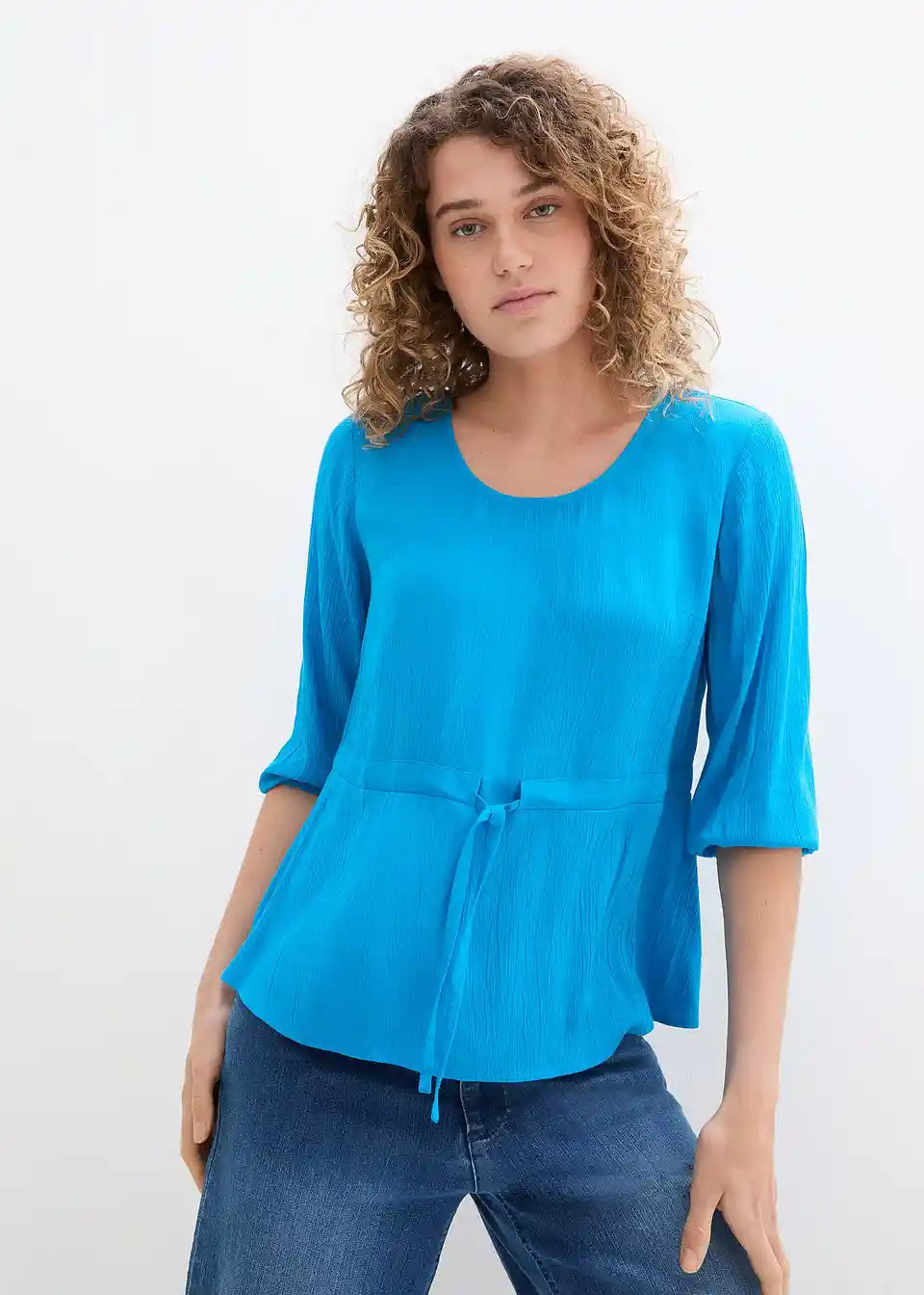Crinkle-Tunika mit Bindedetail, ¾ -Arm