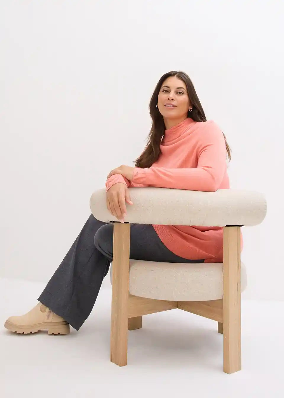 Schlichter Pullover mit Bündchen aus Rippstrick in A-Linien Form