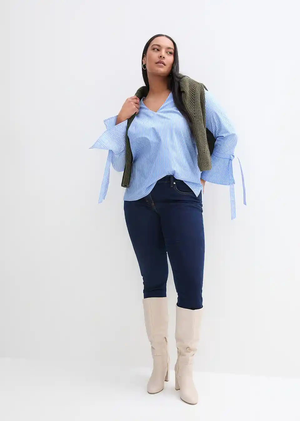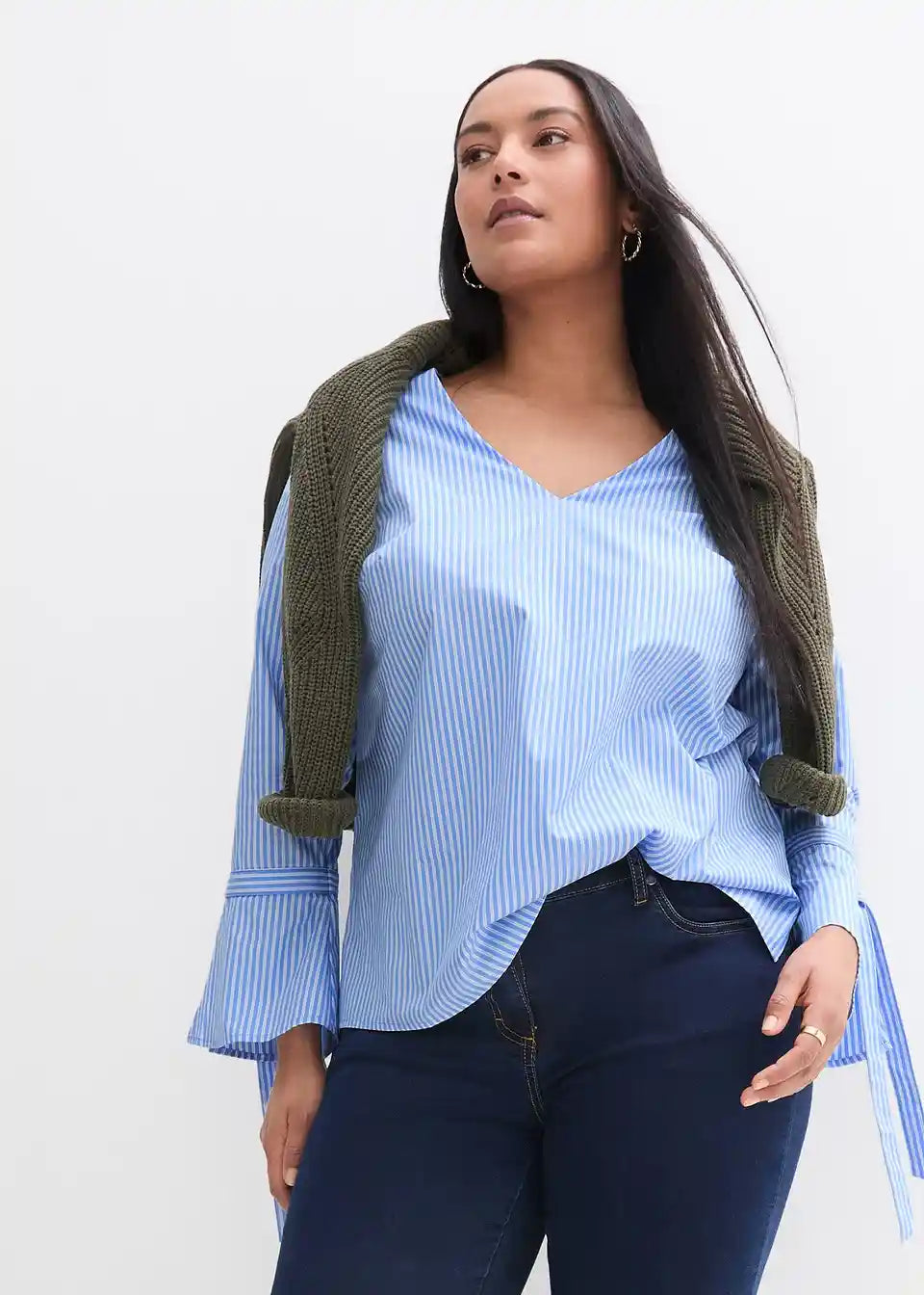 Moderne gestreifte Tunika mit 7/8 Arm