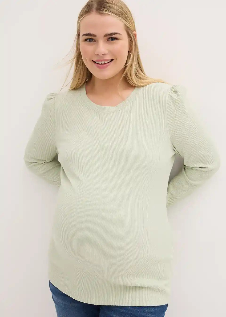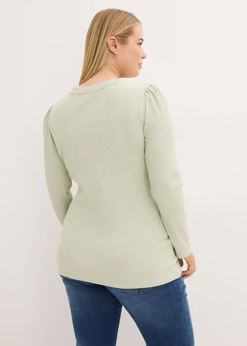 Mit rundem Ausschnitt, anliegender Passform und modischen Puffärmeln.